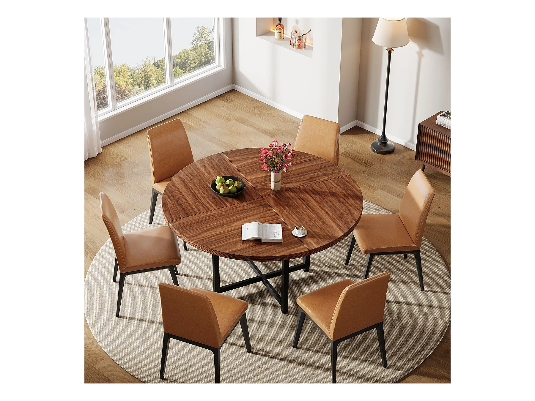 Table de Salle à Manger Ronde pour 4-6 Personnes, Table de Cuisine Circulaire de 120 cm avec Surface texturée en Bois (Marron)
