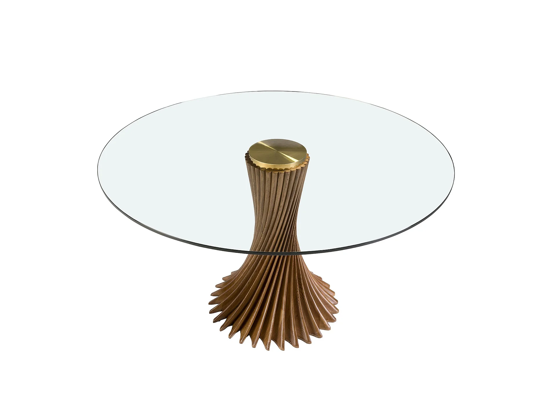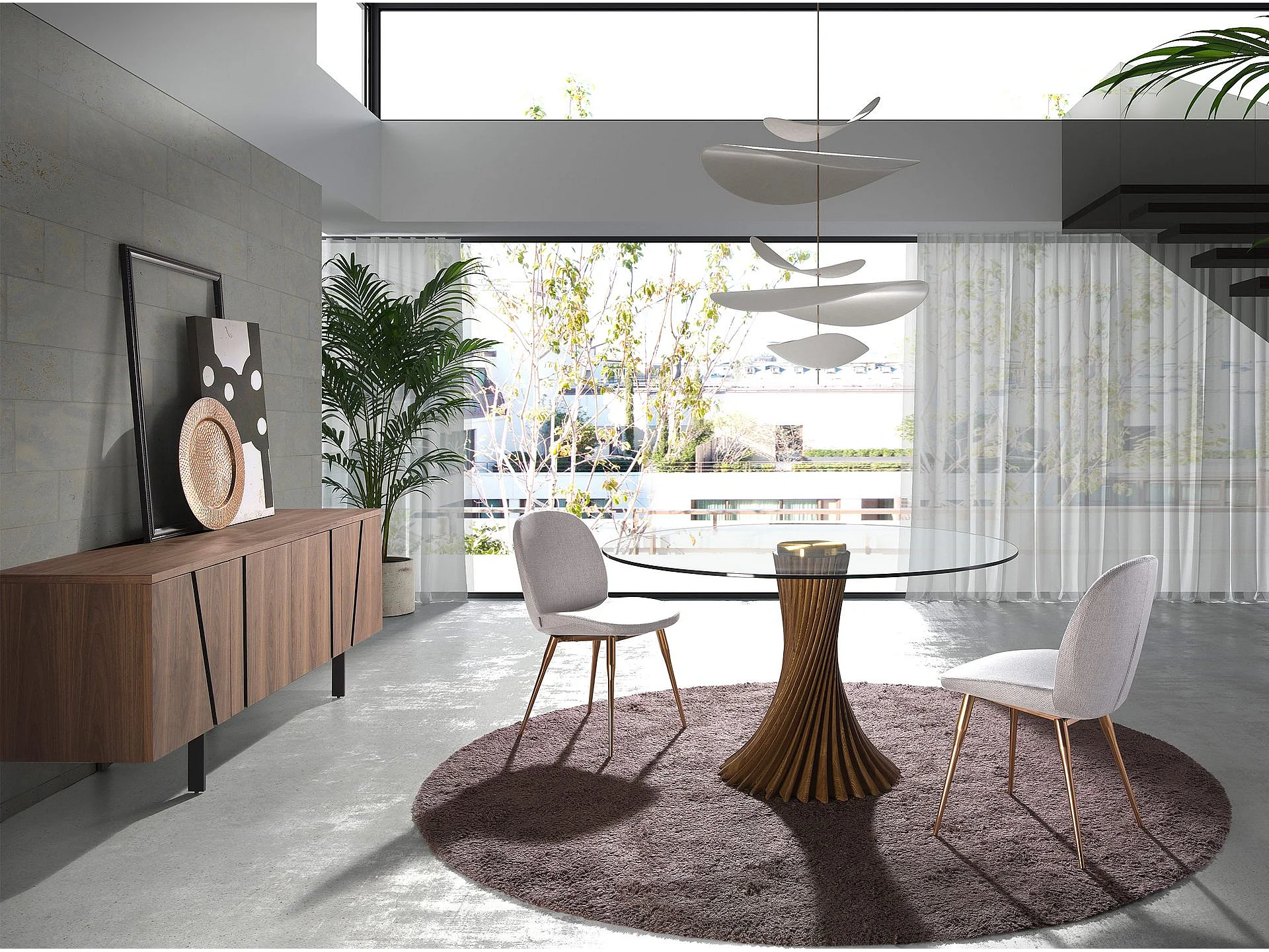 Table à manger ronde verre trempé et noyer 1127 ANGEL CERDA