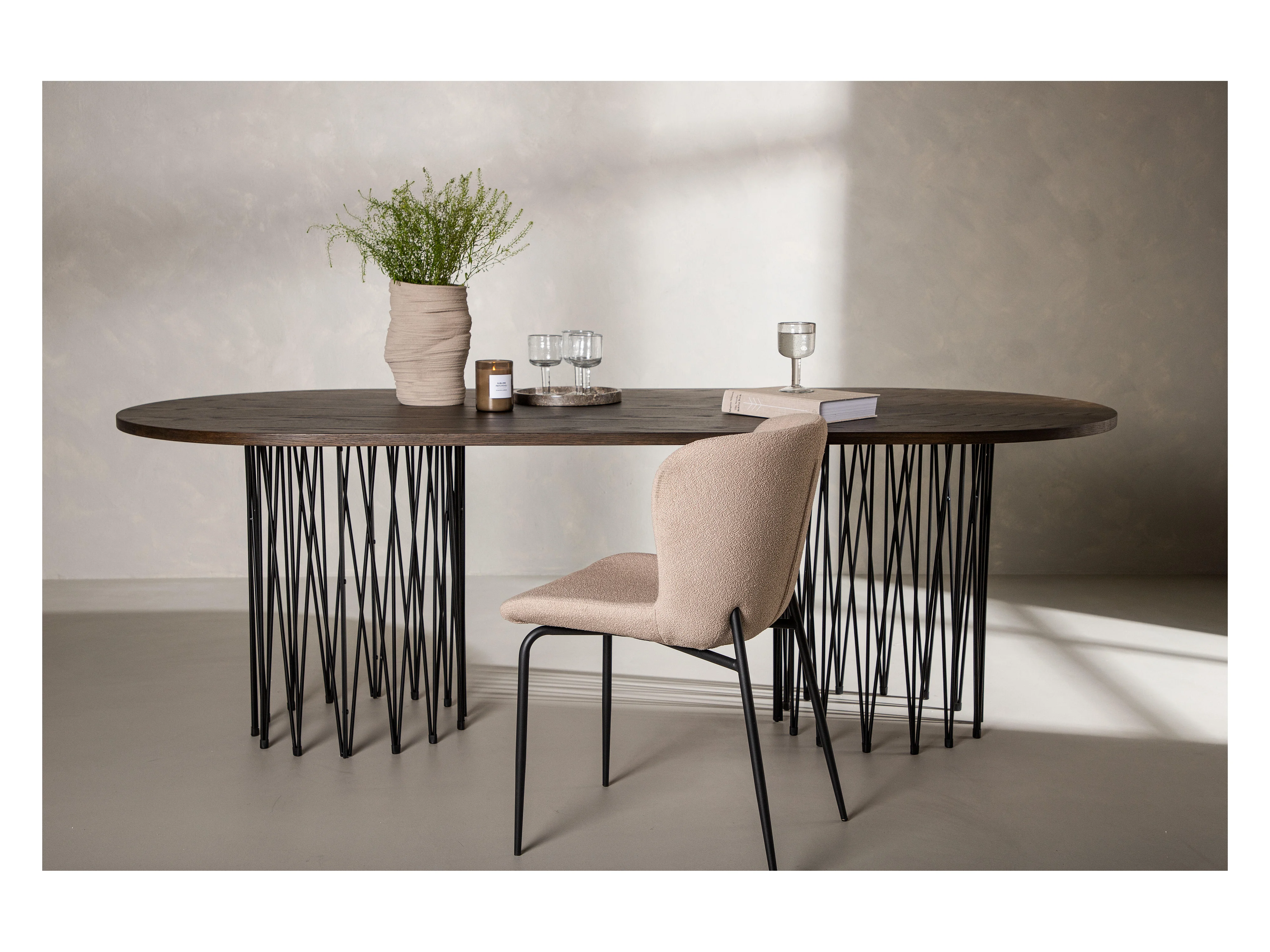 Lot de 6 chaises en tissu bouclette, placage frêne et métal noir - Blanc - ZURIKIA