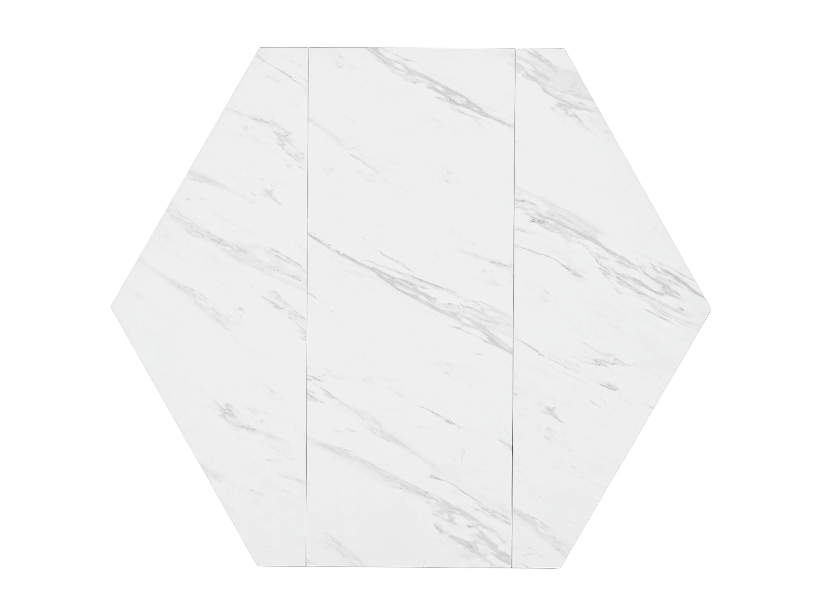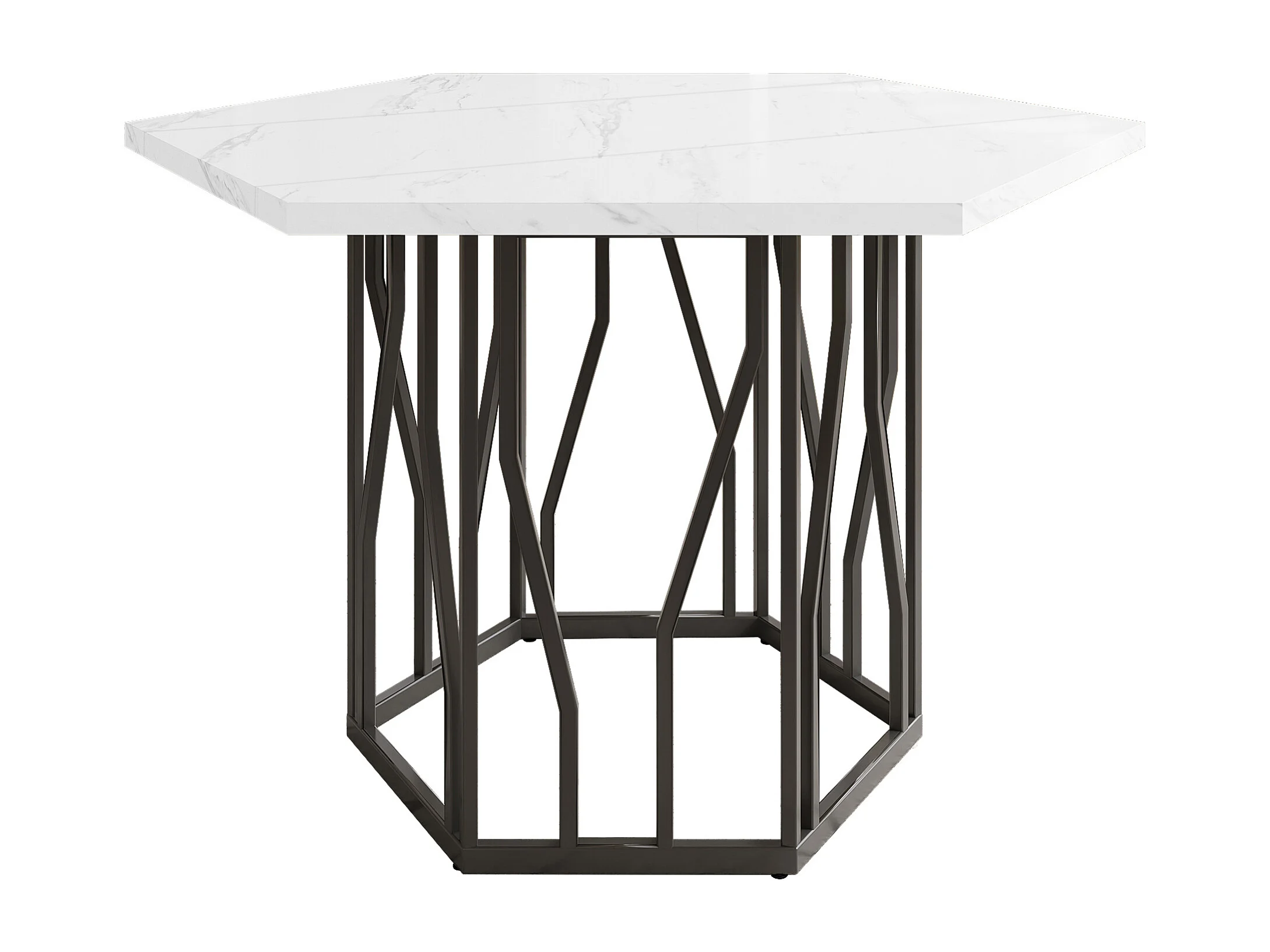 Table à manger hexagonale 115.5x100x75 cm, plateau effet marbre, facile d’entretien, MDF acier, noir blanc