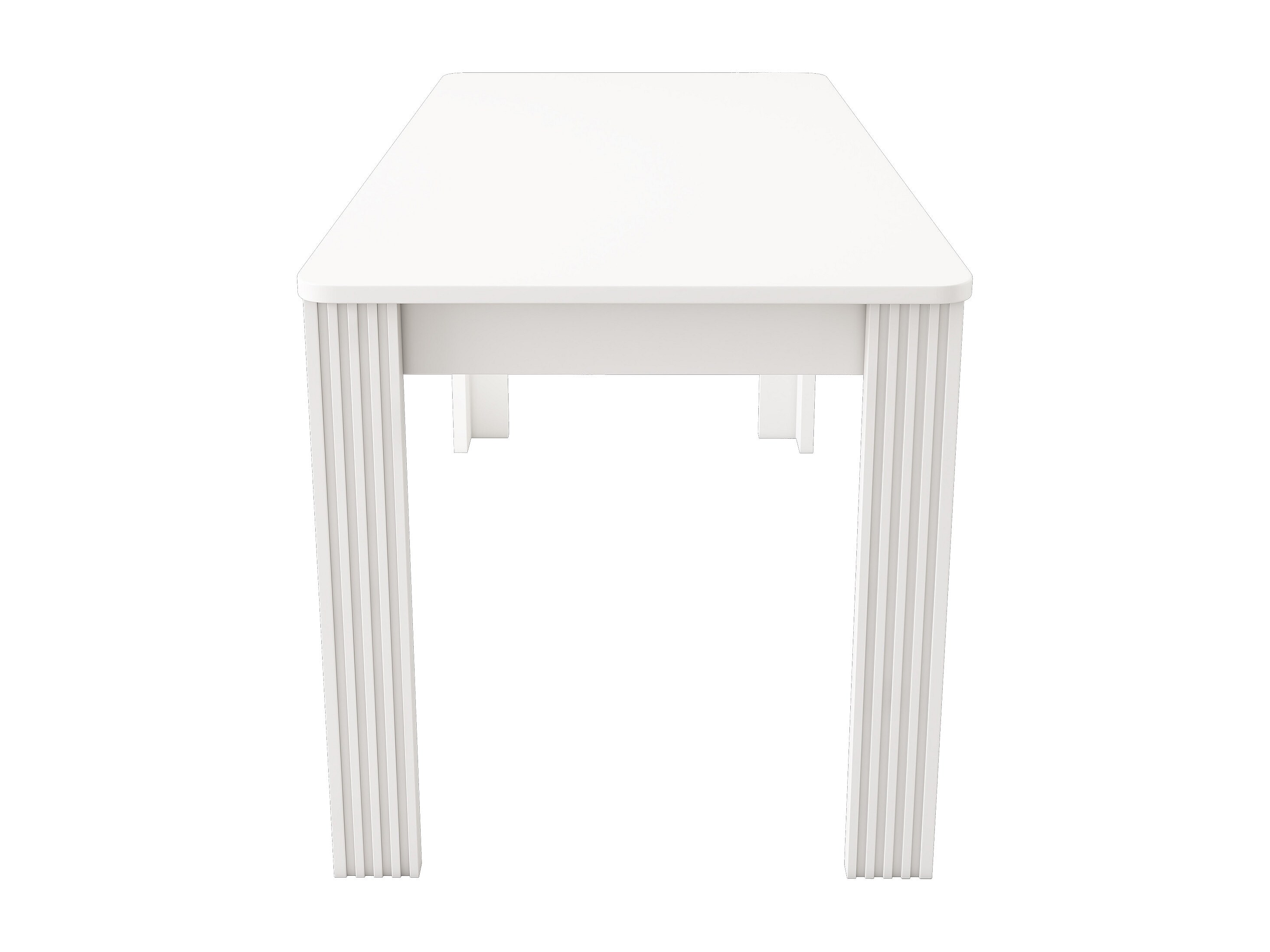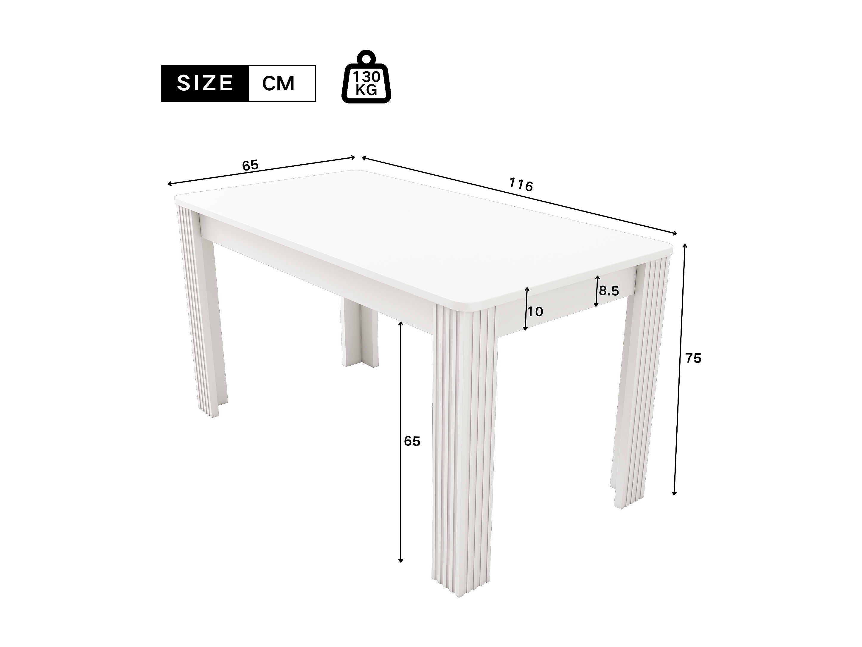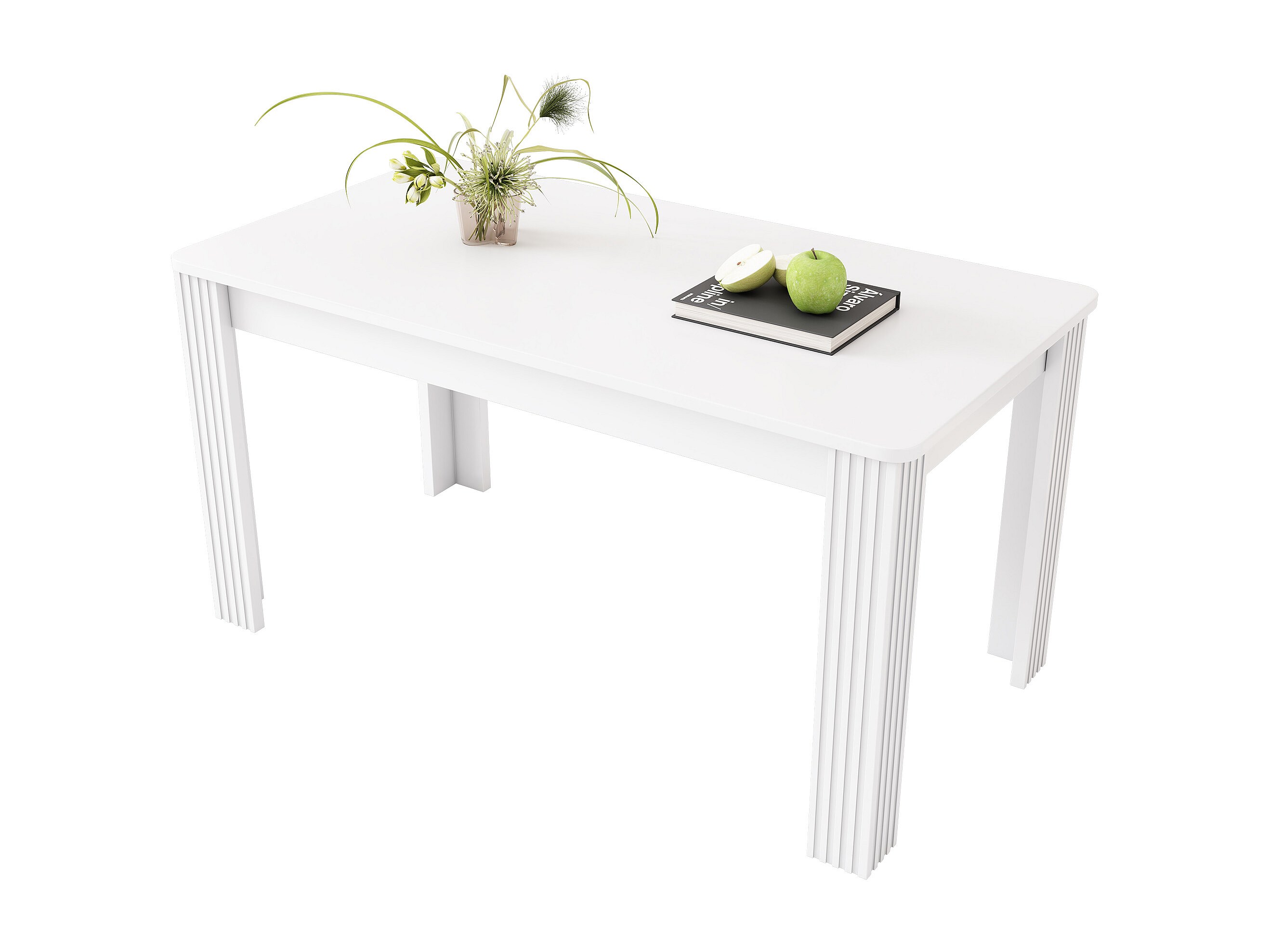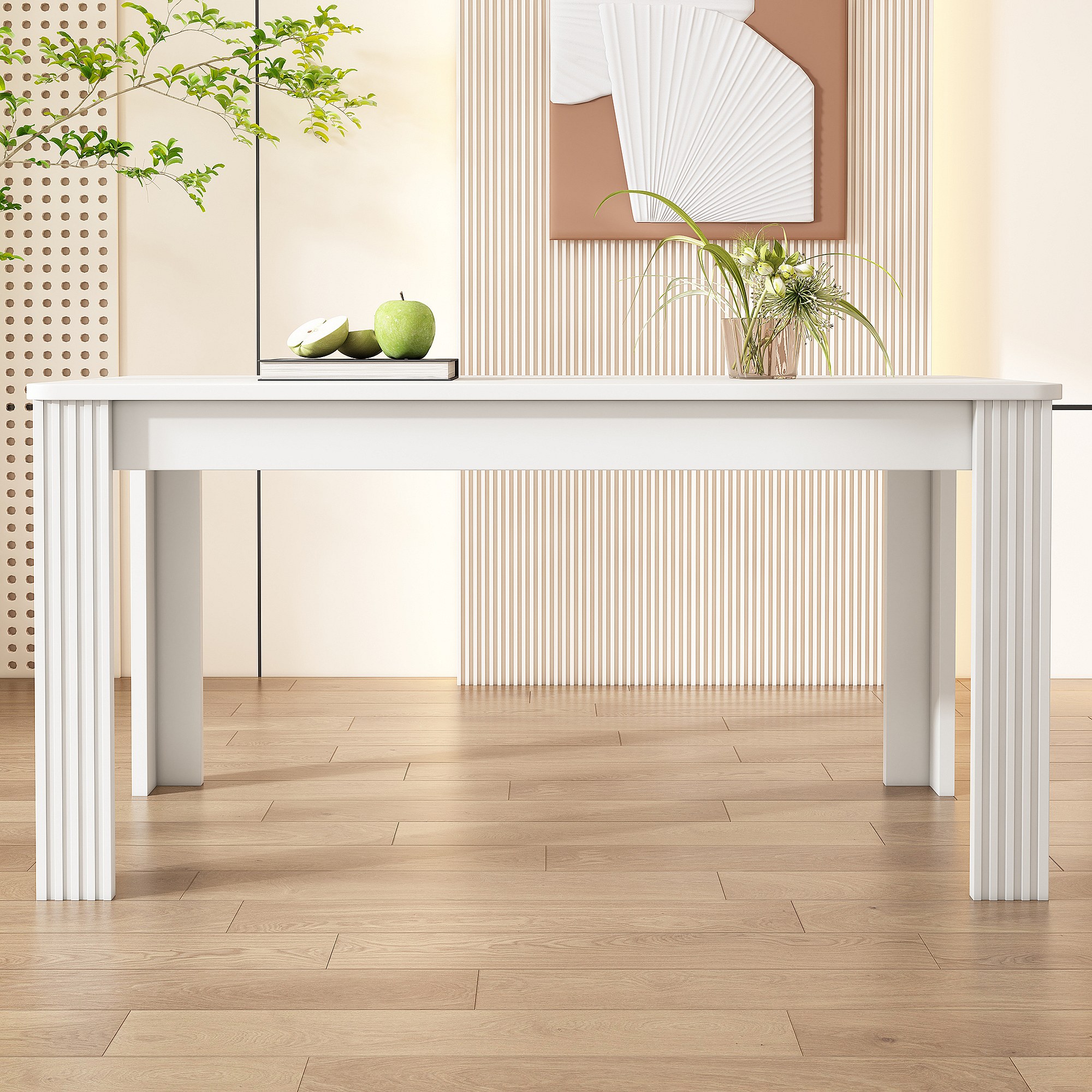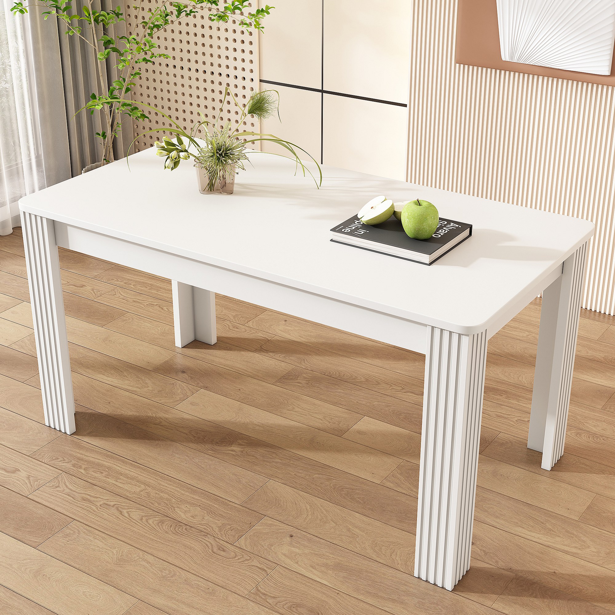 Table à manger rectangulaire116×65×75cm blanc en panneau de particules – 4 pieds, style moderne (sans chaises)