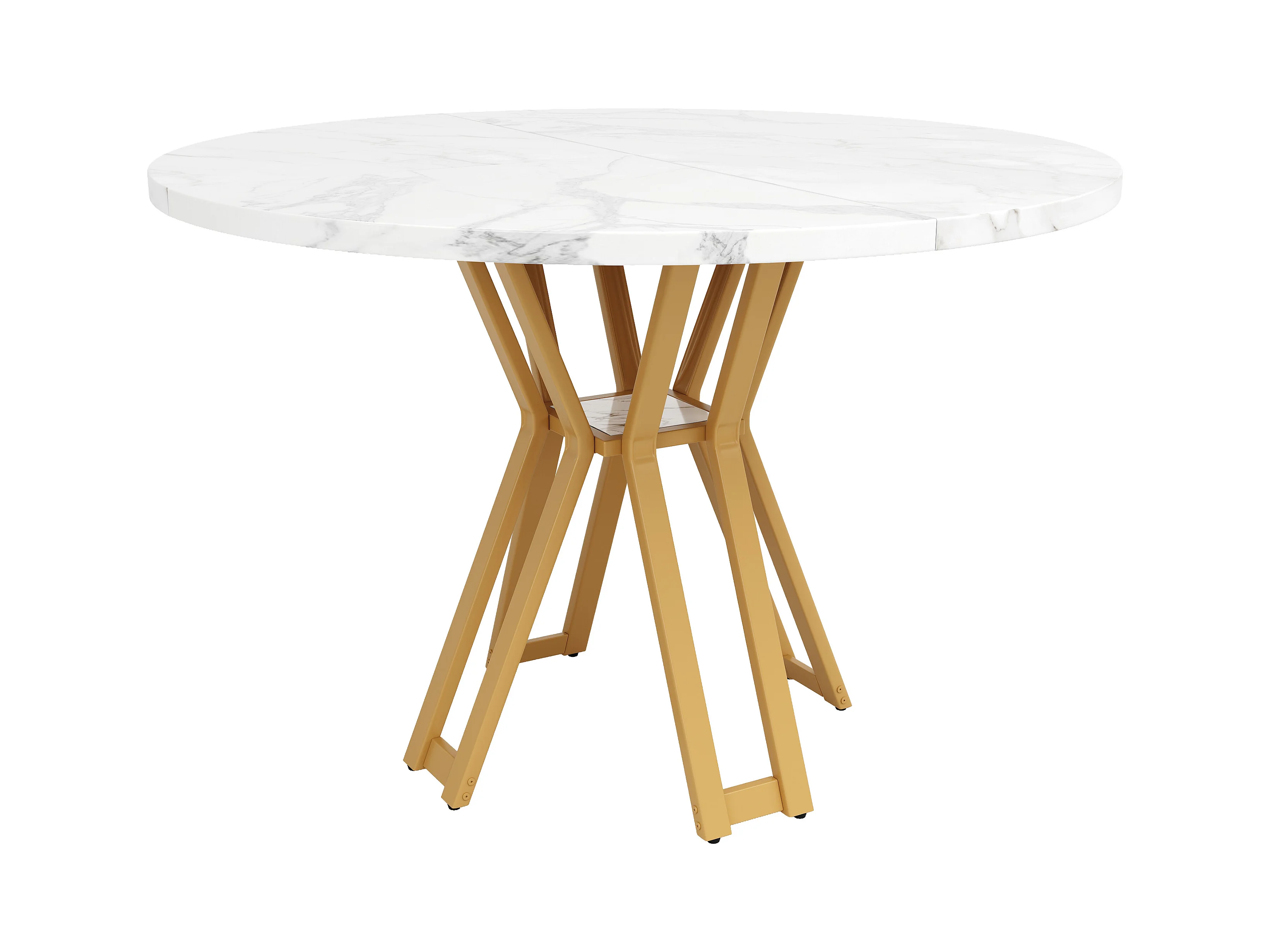 Table à manger table basse ronde pour 4 personnes - pied en métal doré - plateau mdf motif marbre blanc (100x100x76 cm)