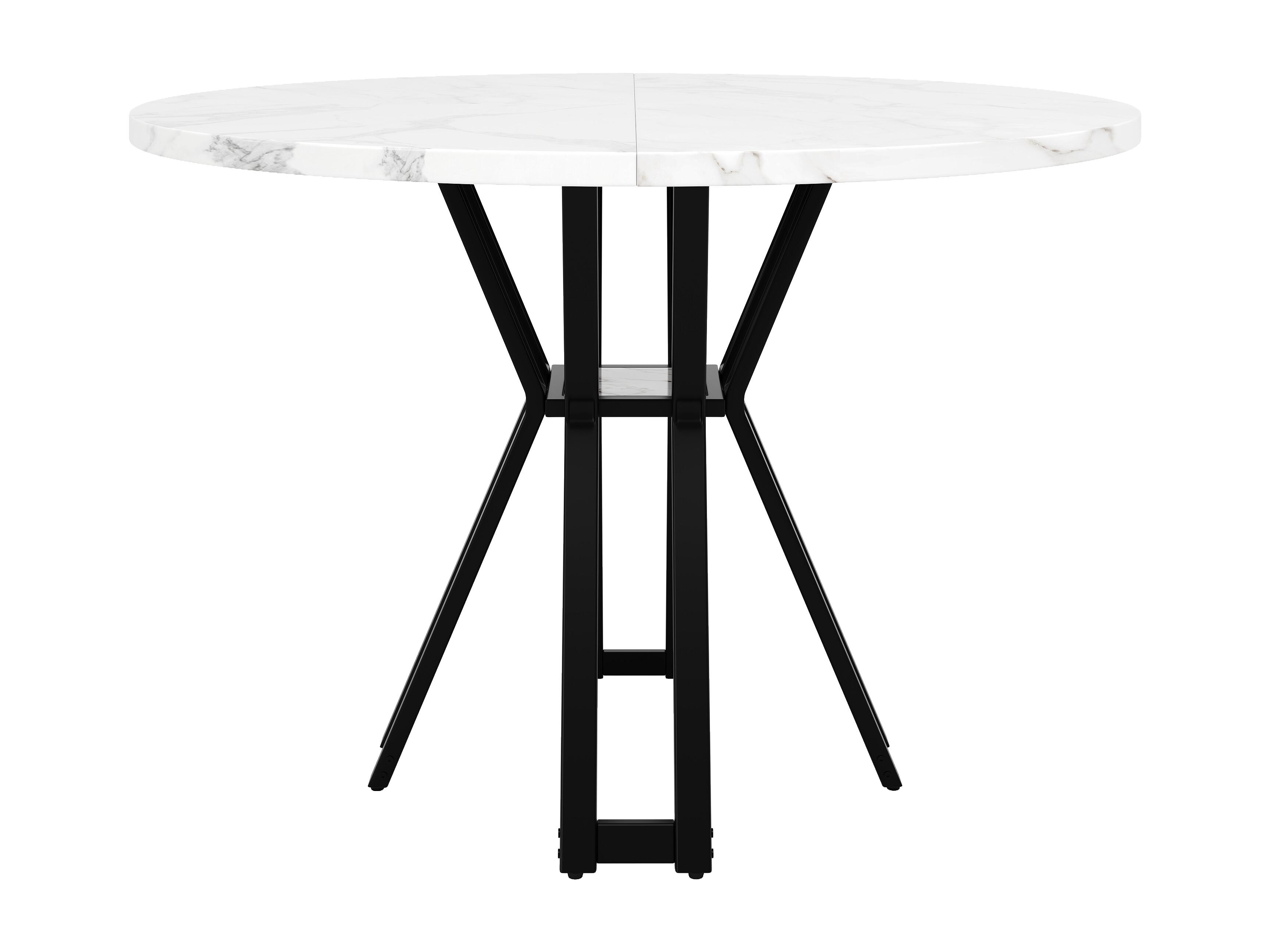 Table à manger table basse ronde pour 4 personnes - pied en métal noir - plateau mdf motif marbre blanc (80x80x76 cm)