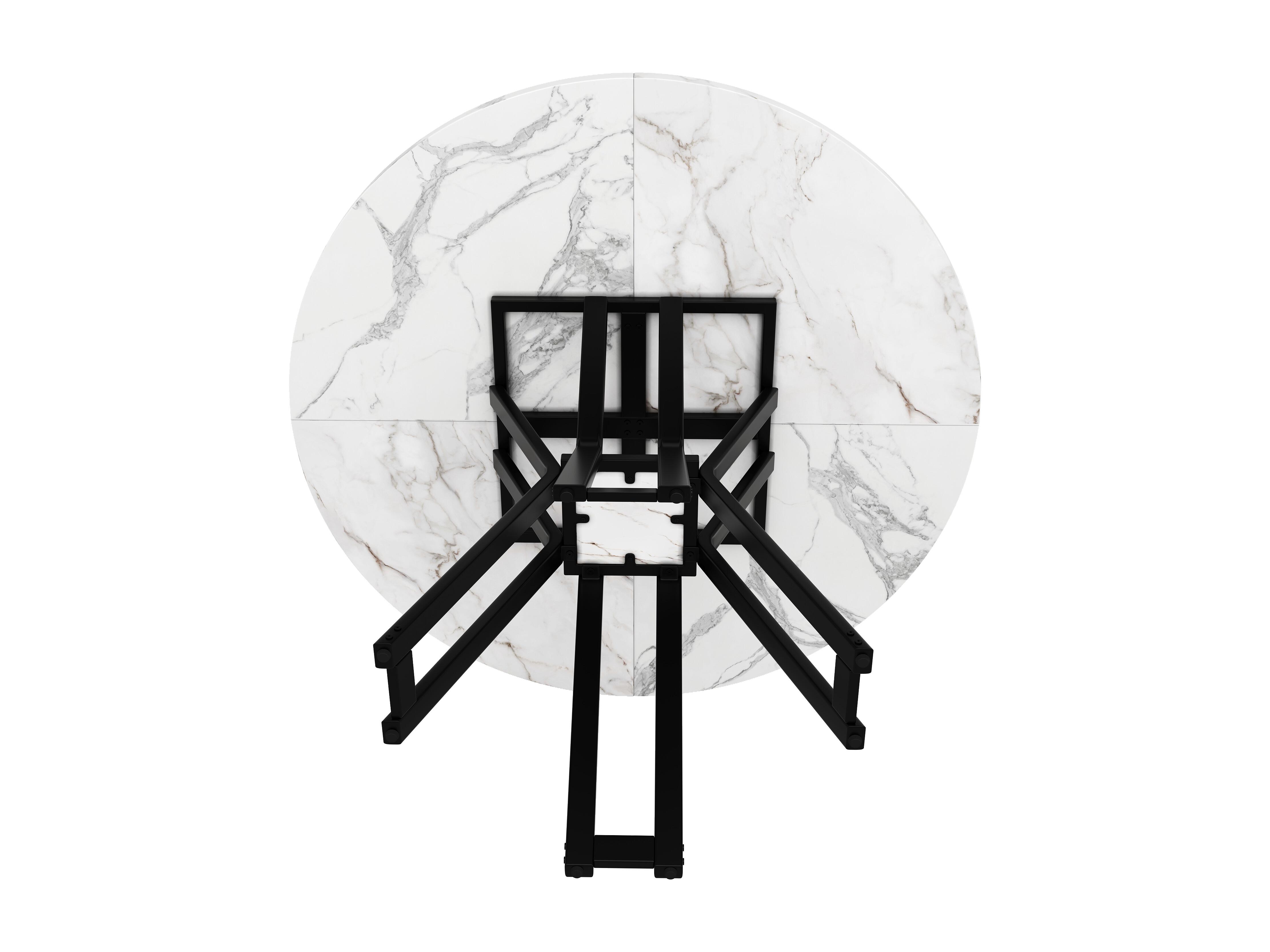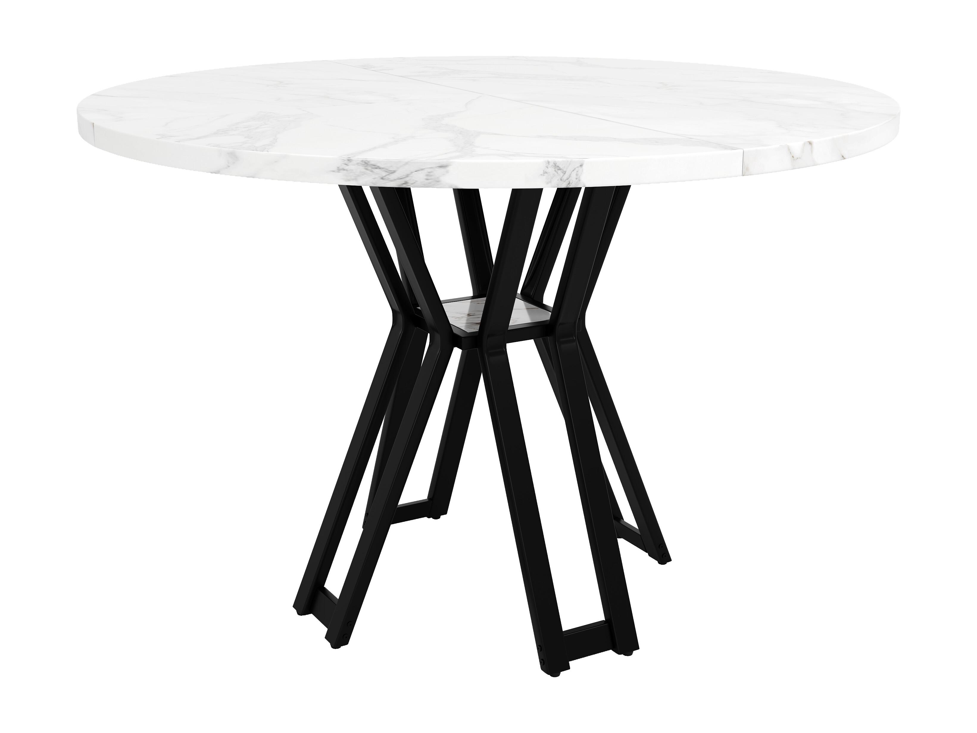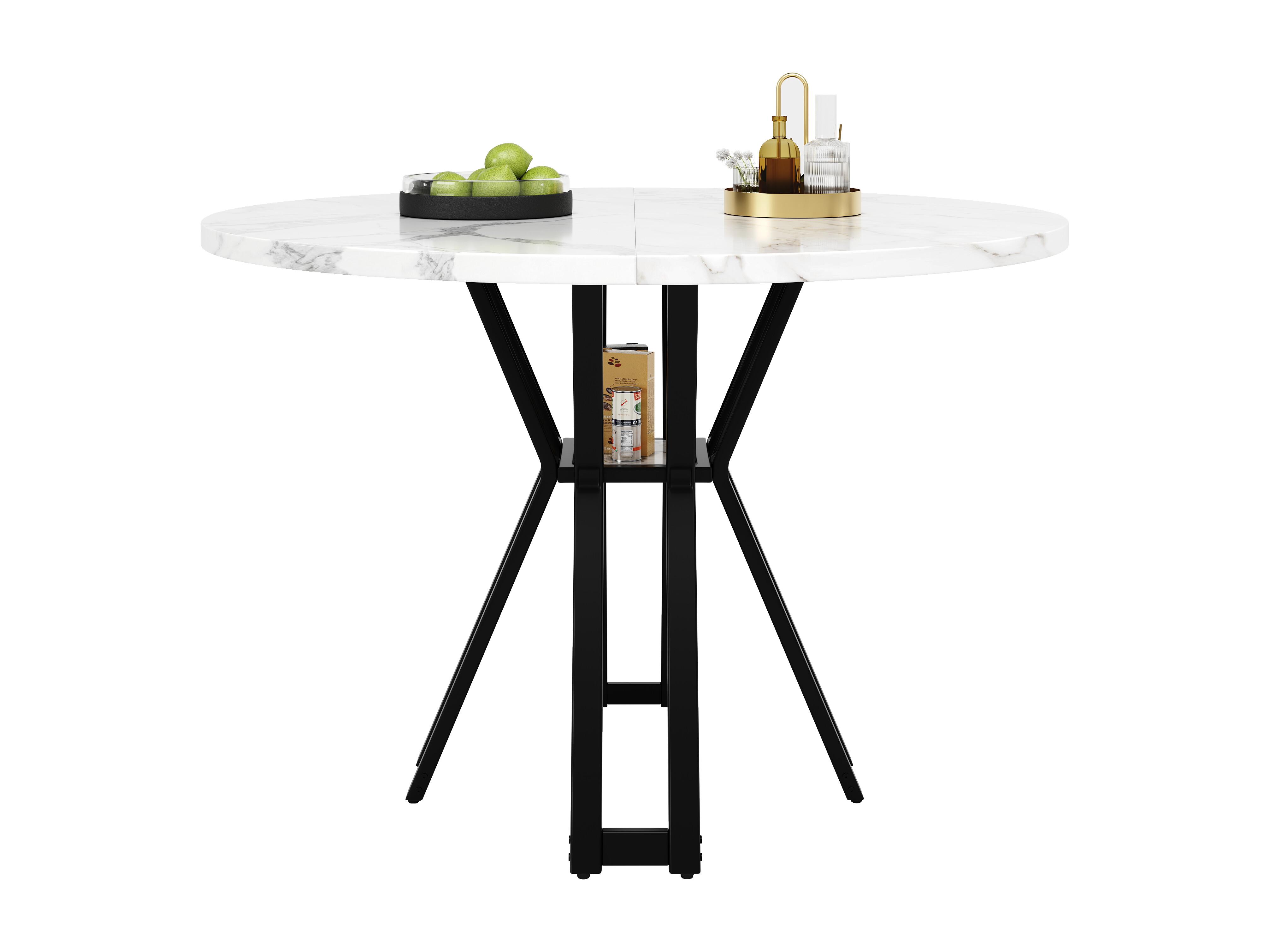 Table à manger table basse ronde pour 4 personnes - pied en métal noir - plateau mdf motif marbre blanc (100x100x76 cm)