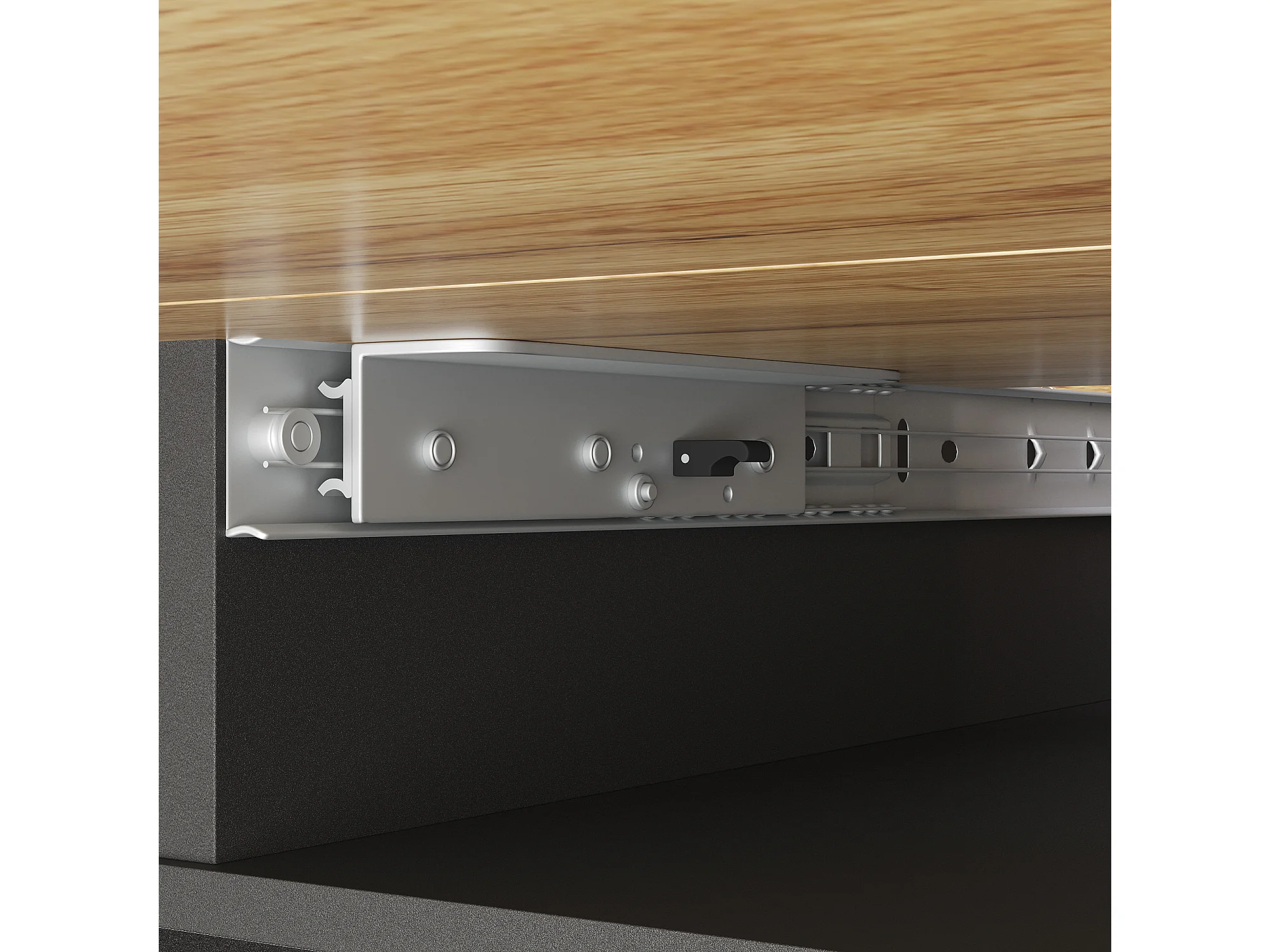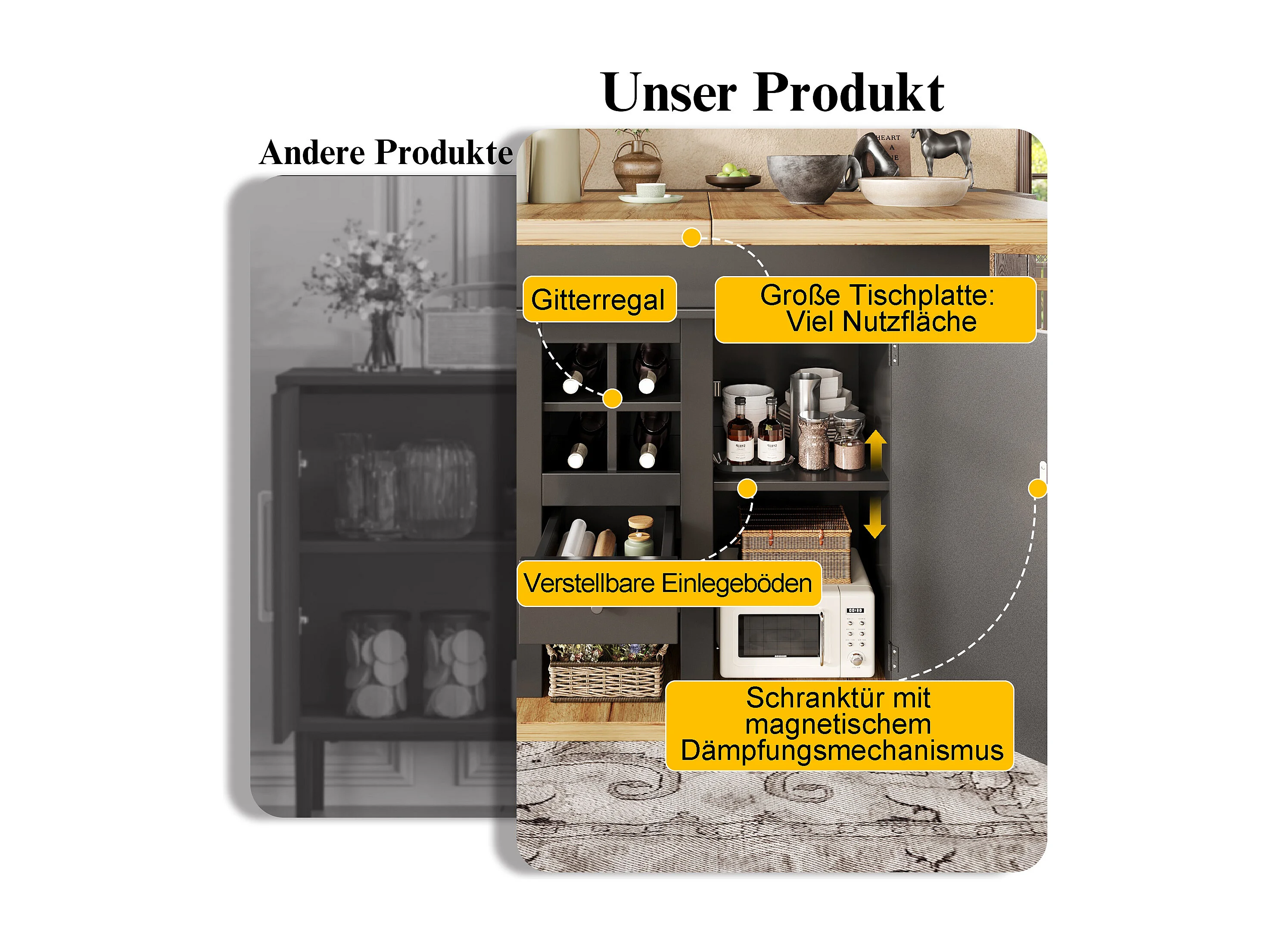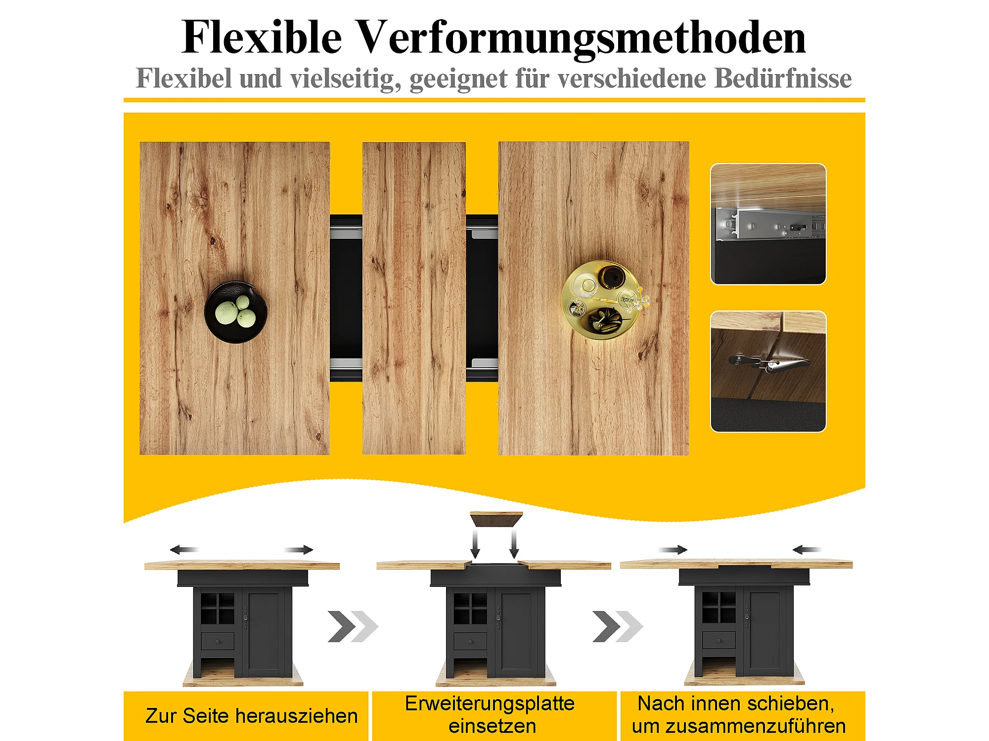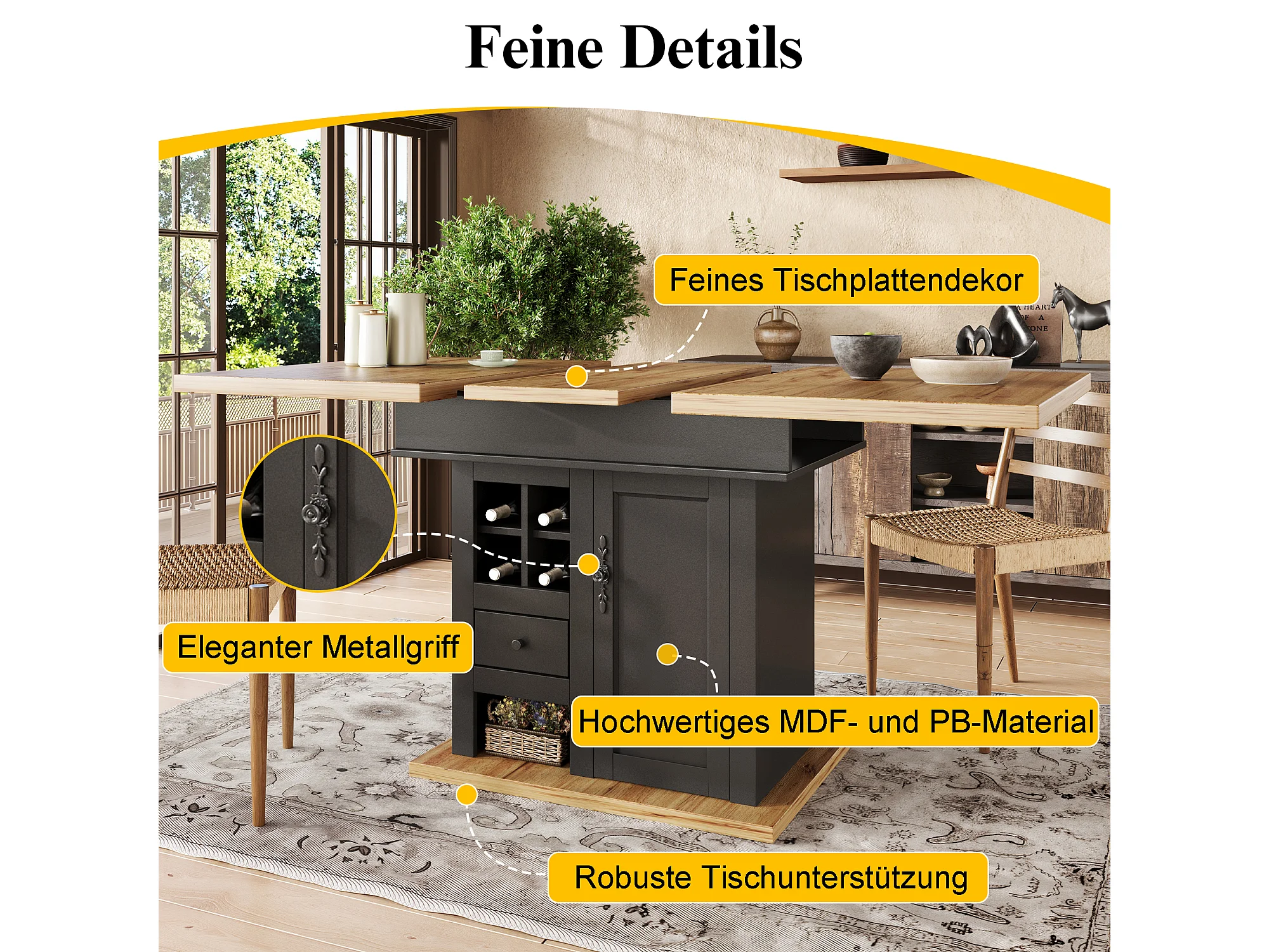 Table à manger télescopique (110-140x80 cm), table pliante pour 4-6 personnes, extensible, avec rangement pour vin et tiroirs, en noir (110-140x80x75 cm)