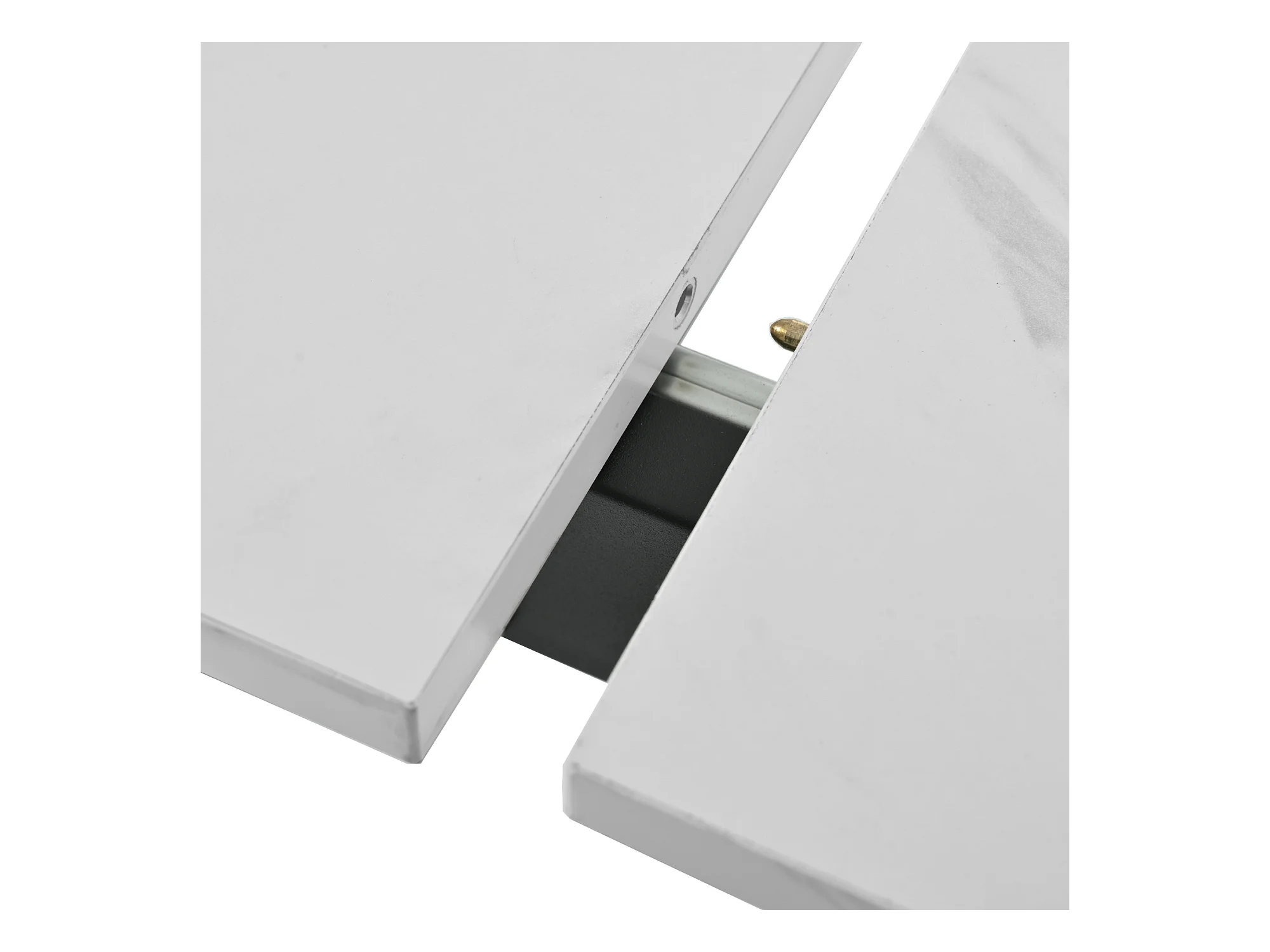 Table à manger télescopique 140/180x80x75 cm, plateau MDF blanc avec motifs marbre, pieds en métal noir (140/180x80x75 cm)