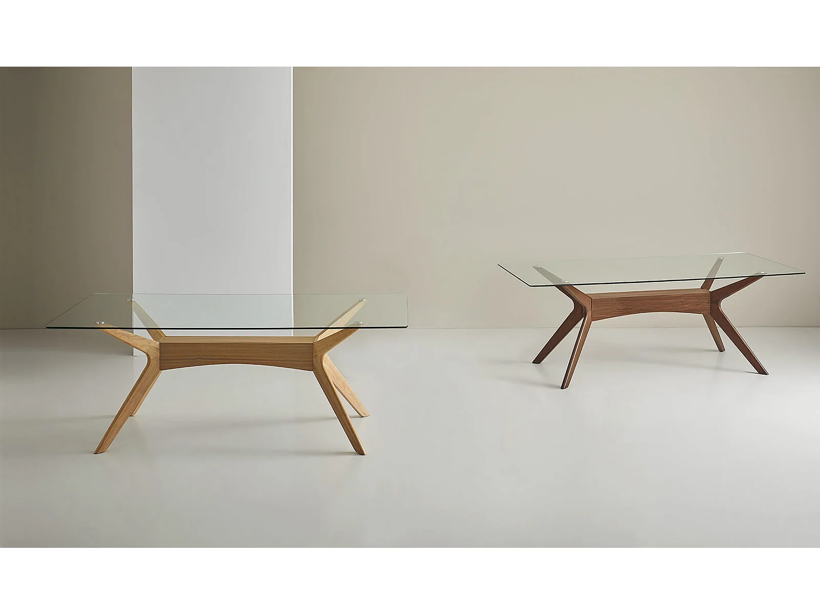 Table à manger verre trempé et bois d'hévéa finition noyer Noky-Largeur 200 cm