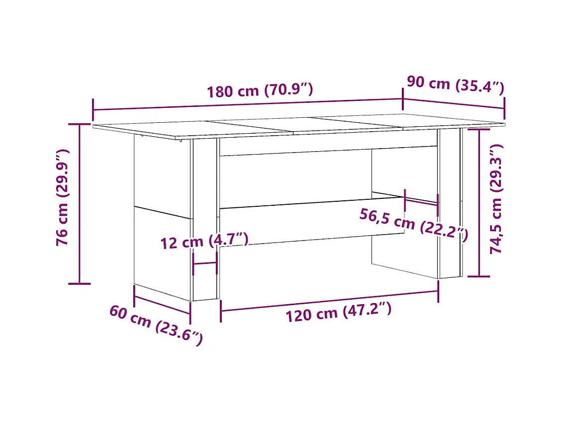 Table à manger chêne artisanal 180x90x76 cm bois d'ingénierie