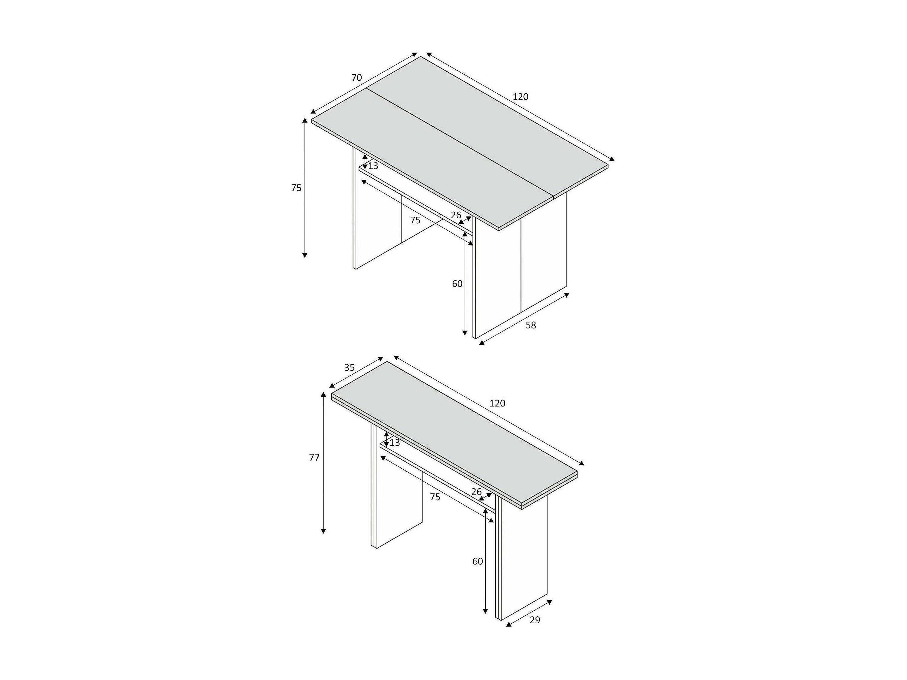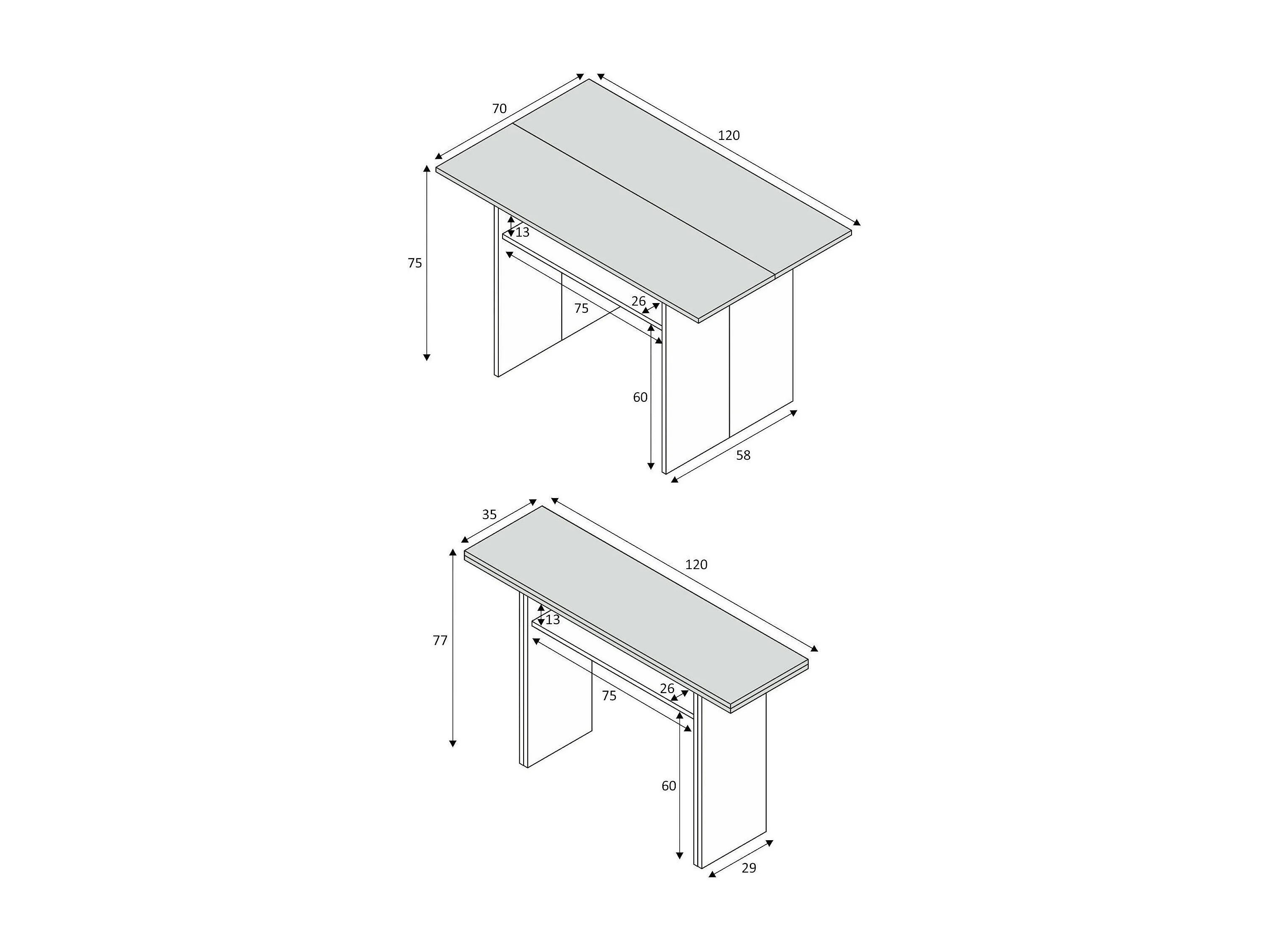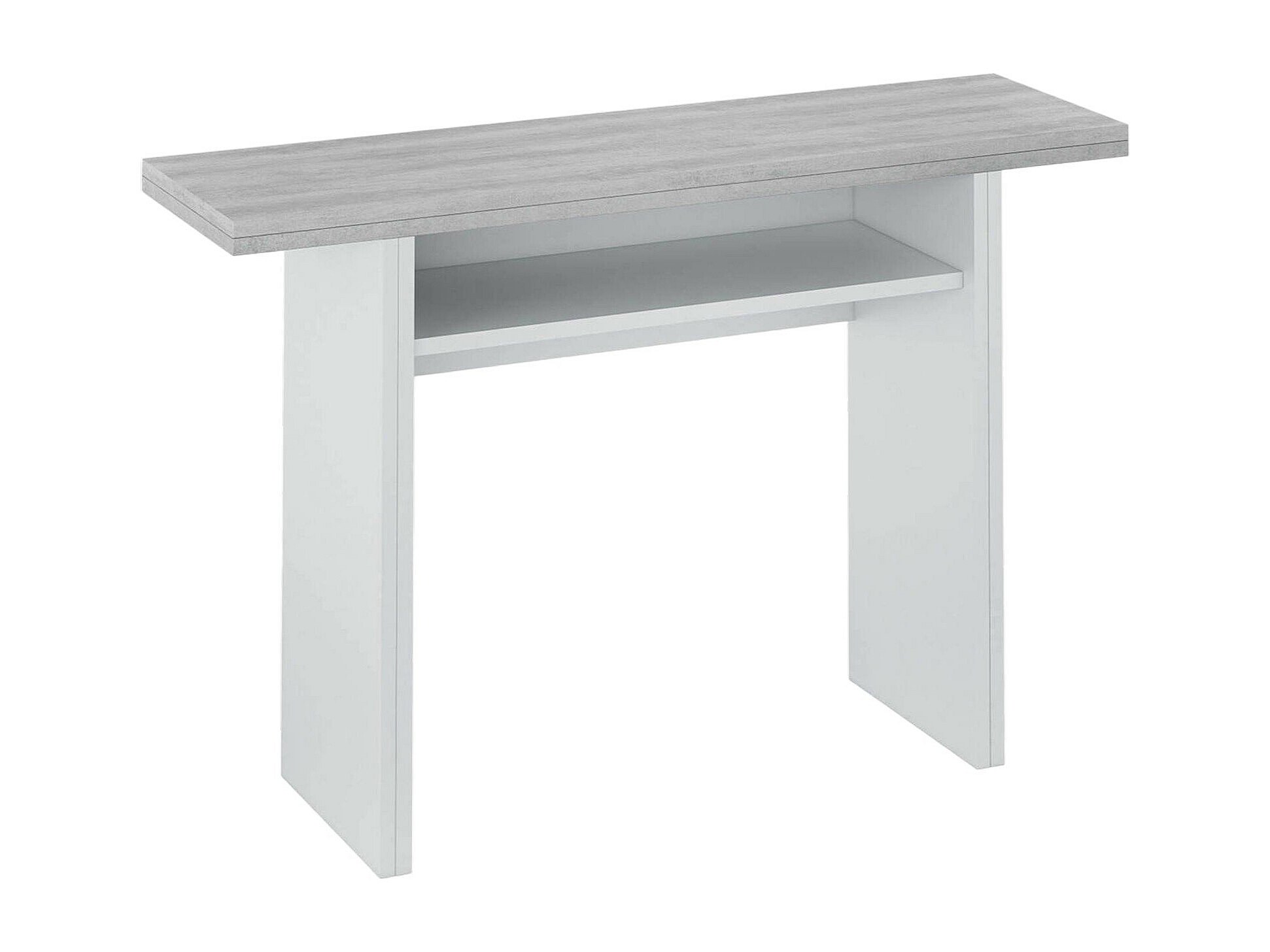 Table extensible Ddiaz, Etagère extensible avec ouverture rabattable, Table console d'appoint pliante, 120x35h77 cm, Blanc et Ciment