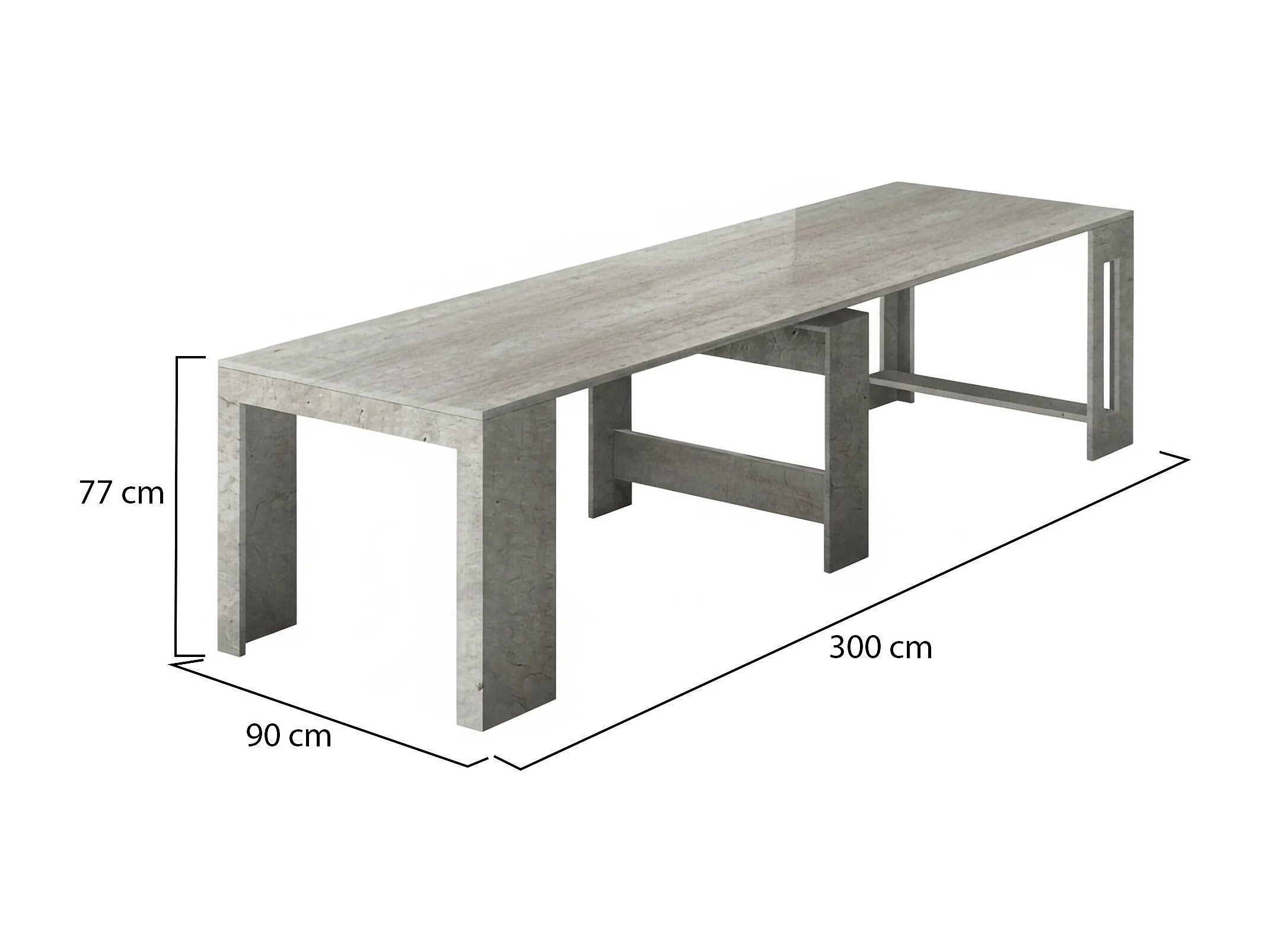 Console extensible Dguigo, Console extensible jusqu'à 12 places, Table avec supports d'extension, 100% Made in Italy, 51/300x90h77 cm, Ciment