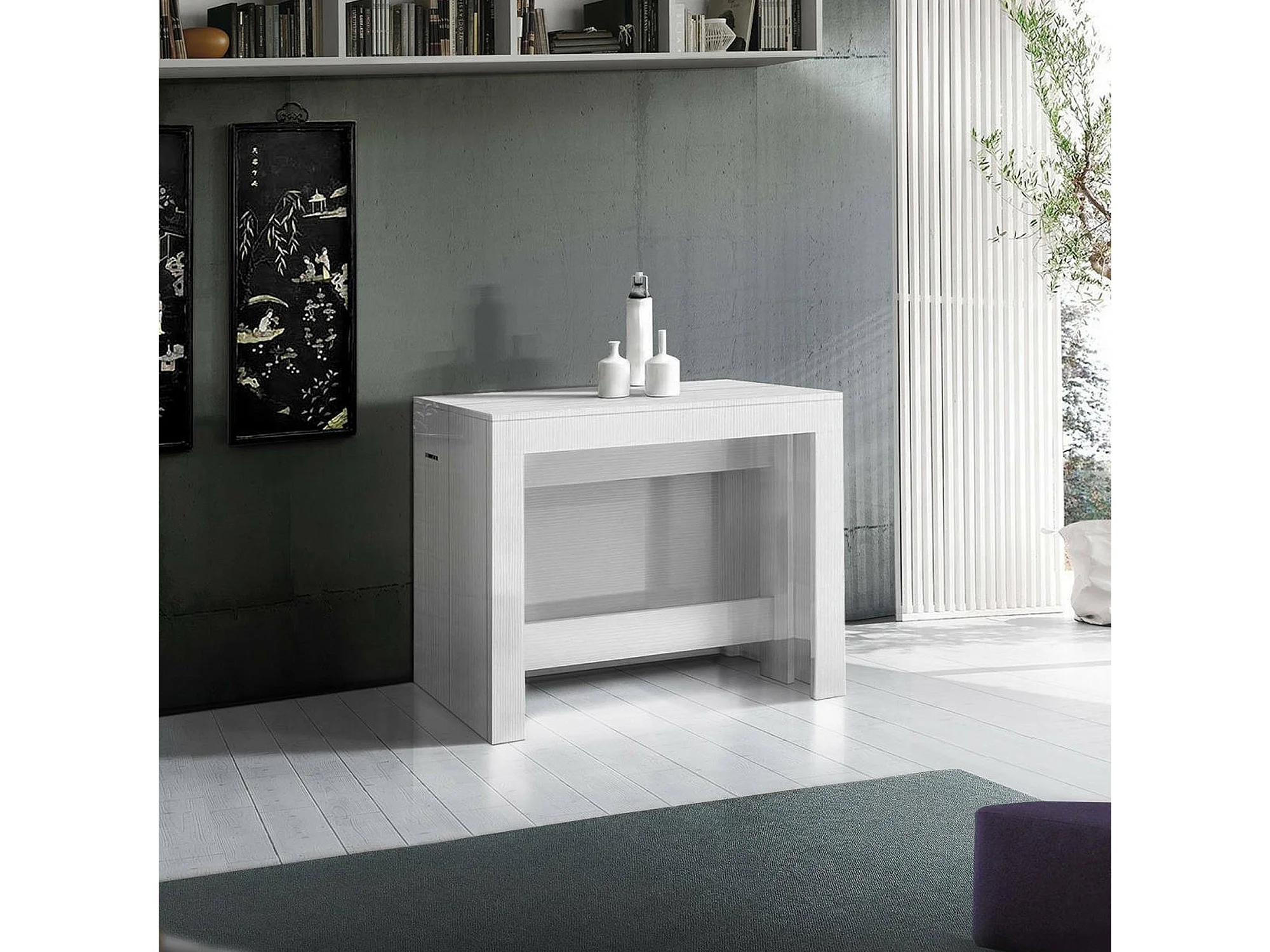 Console extensible Dguigo, Console extensible jusqu'à 12 places, Table avec supports d'extension, 100% Made in Italy, 51/300x90h77 cm, Mélèze blanc brillant