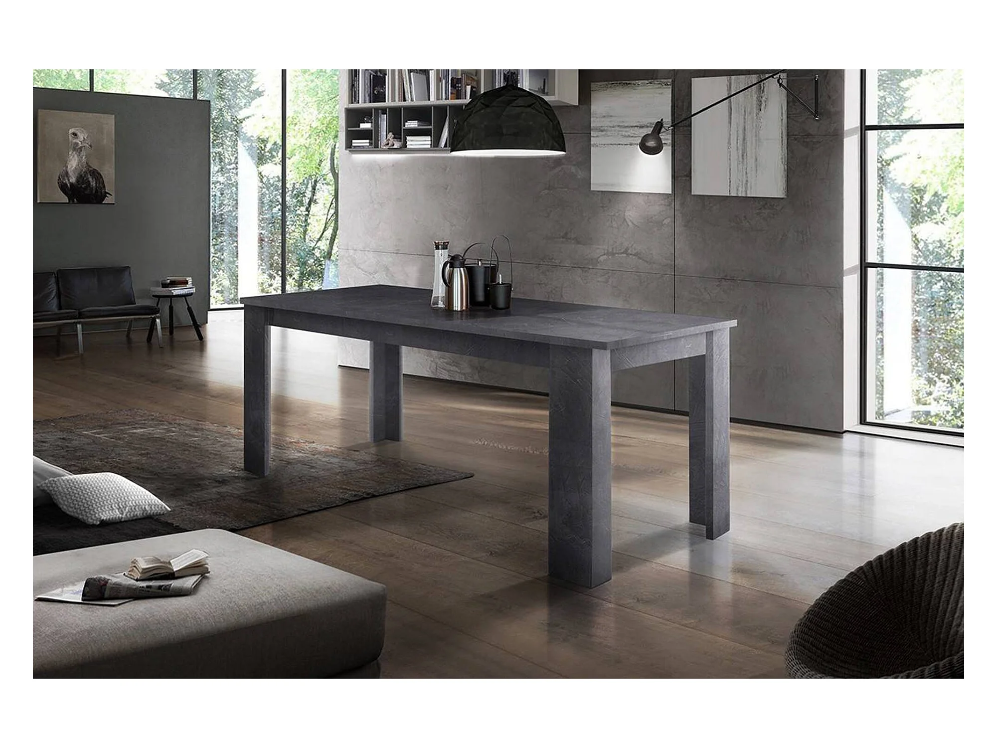 Table à manger extensible Tiroz-Couleur Gris ciment-4 pieds-2 rallonges épaisses-160 à 264cm
