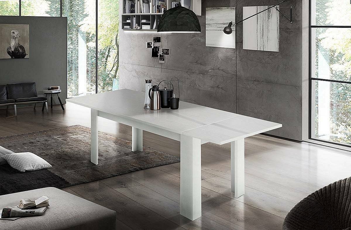 TABLE À RALLONGE - Console extensible jusqu'à 12 places, console extensible 100% Made in Italy, 160/210x90h75 cm, Mélèze blanc brillant.