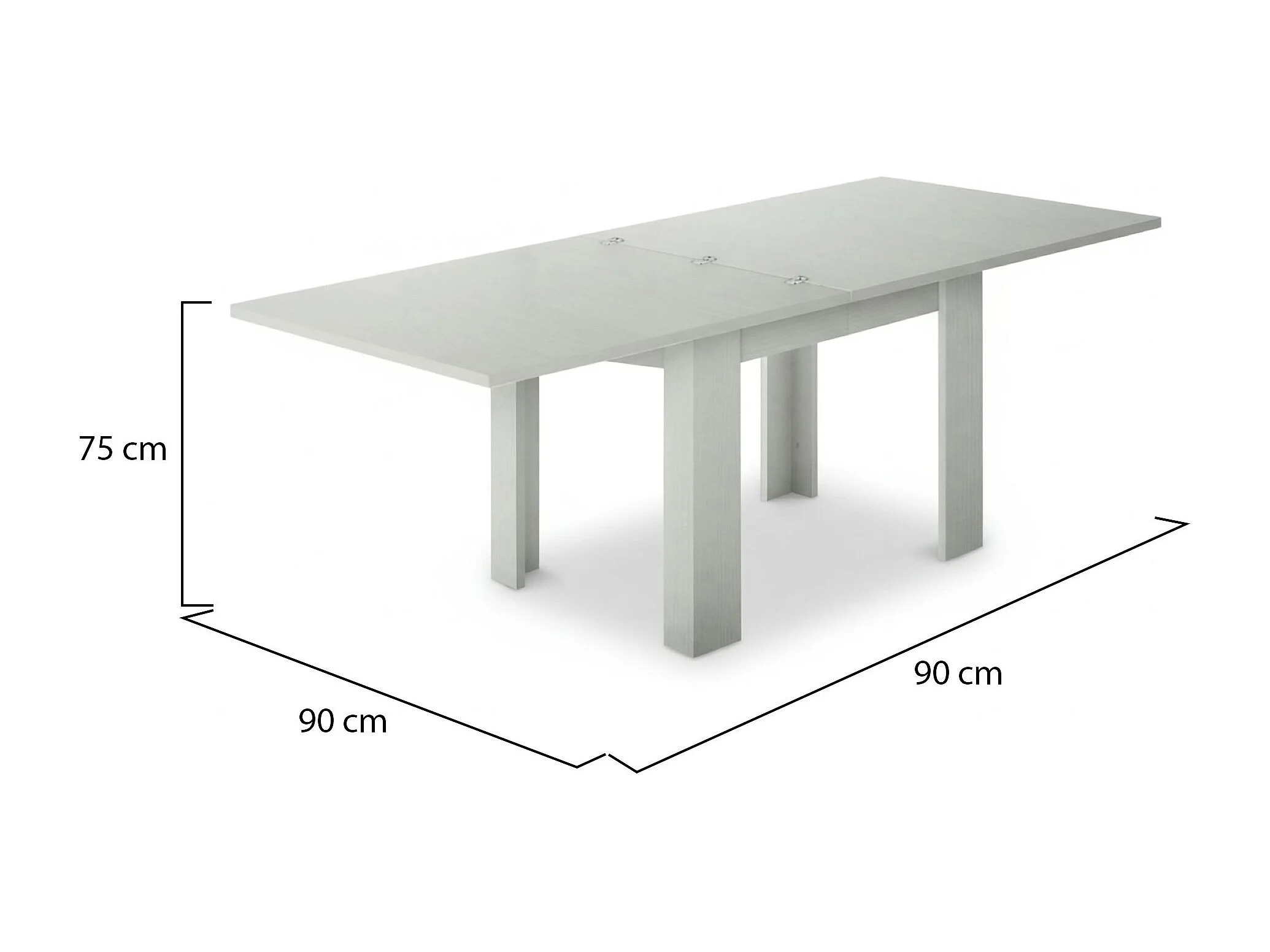 Table extensible Dlirol, Console auxiliaire de cuisine, Table extensible, 100% Made in Italy, 90x90h75 cm, Mélèze blanc brillant