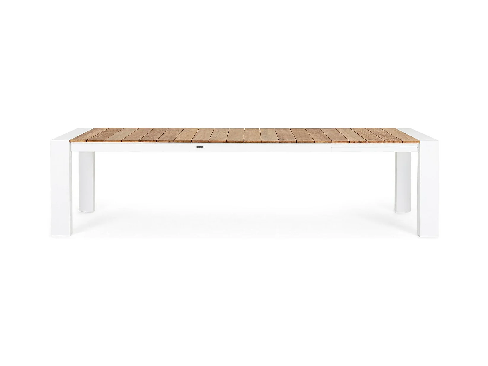 Table à rallonge en aluminium blanc et bois de teck 228x100-294x100 - CAMERON