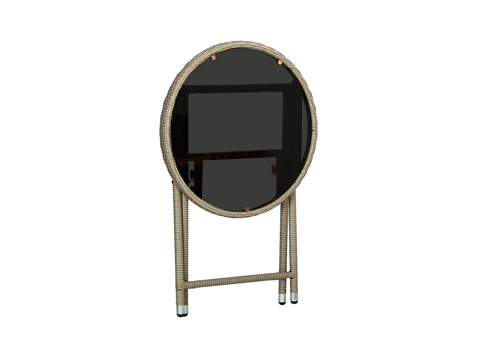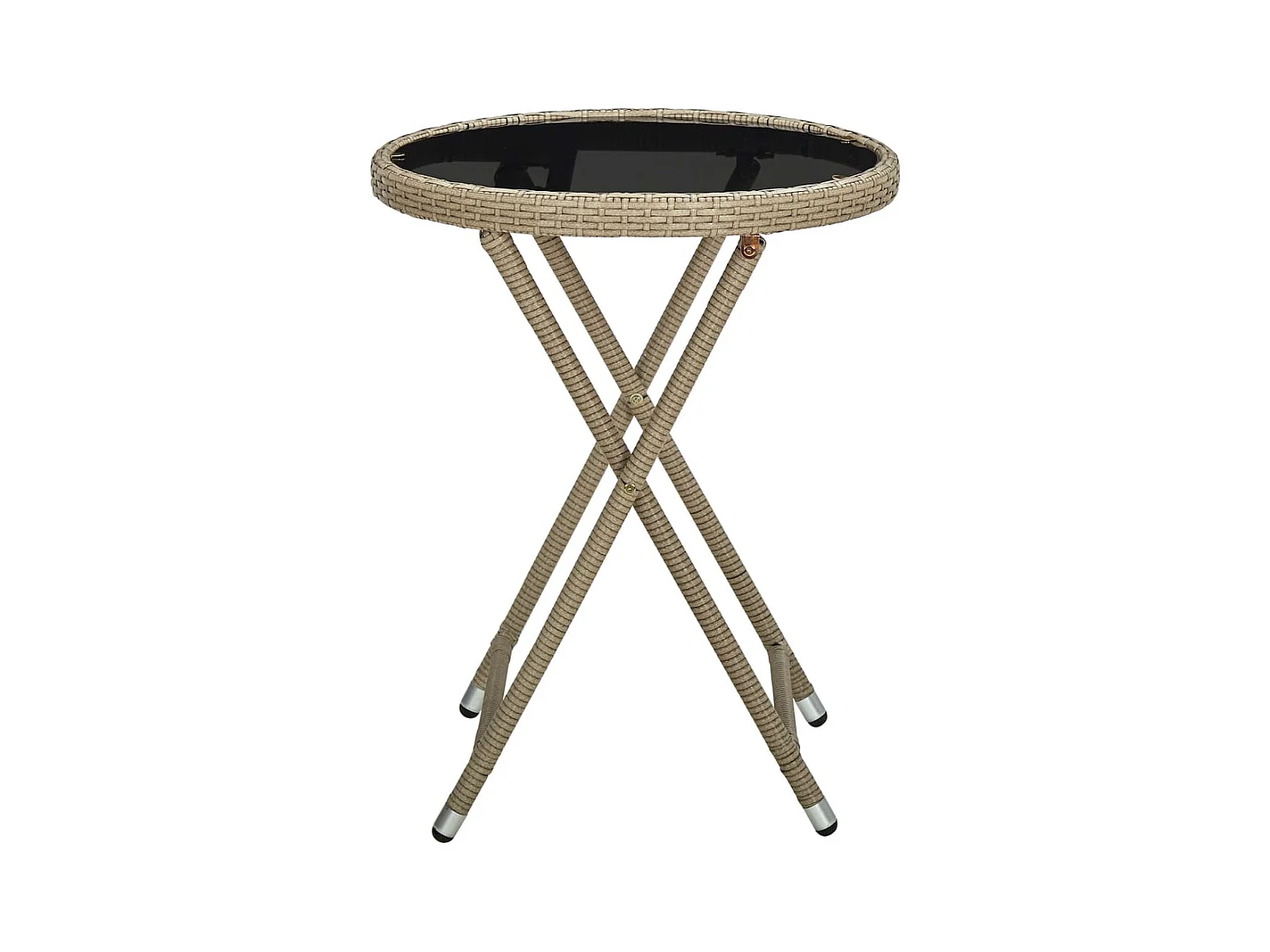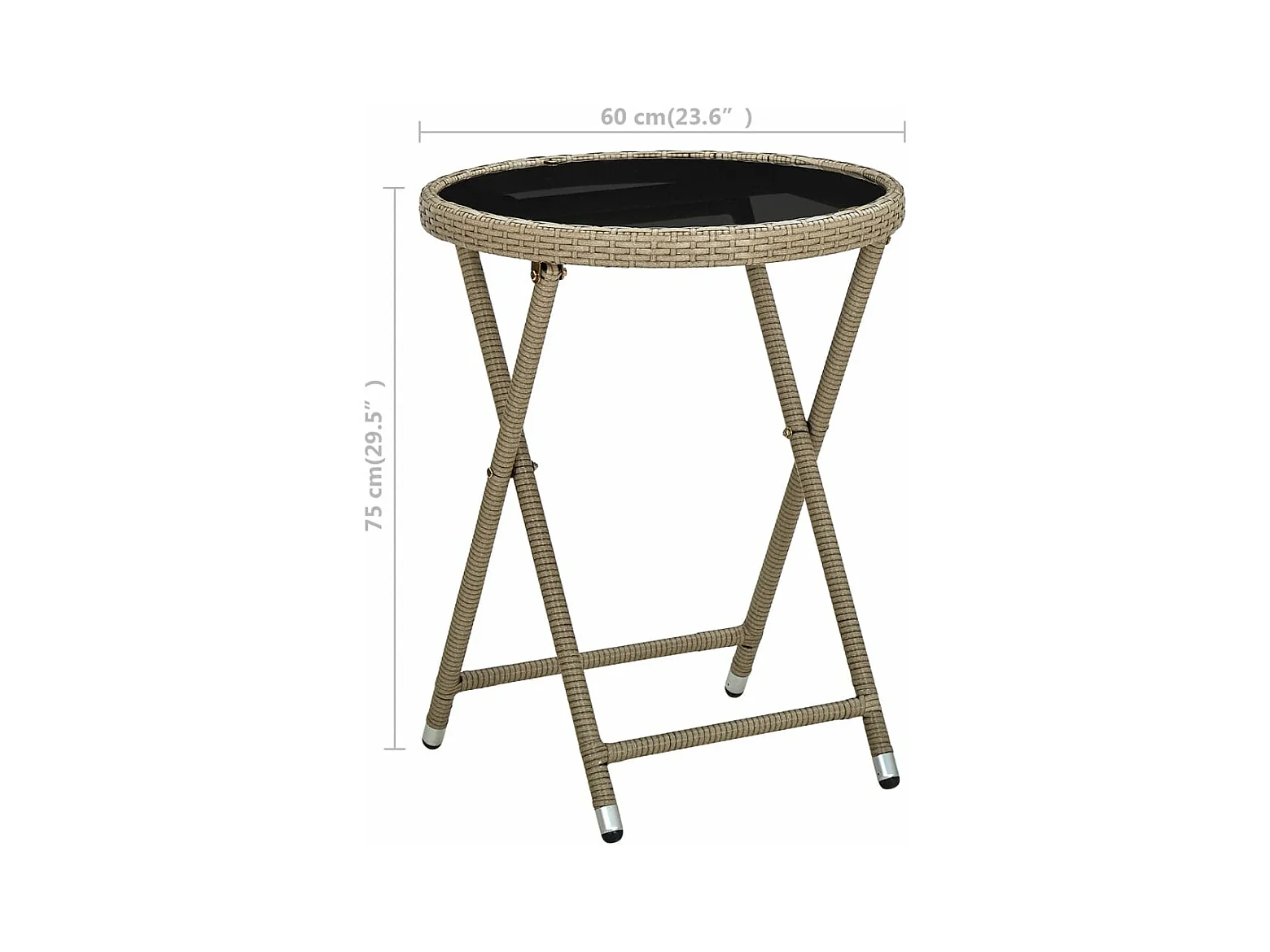 Table de jardin Ø60x75 cm Verre trempé/résine tressée Beige