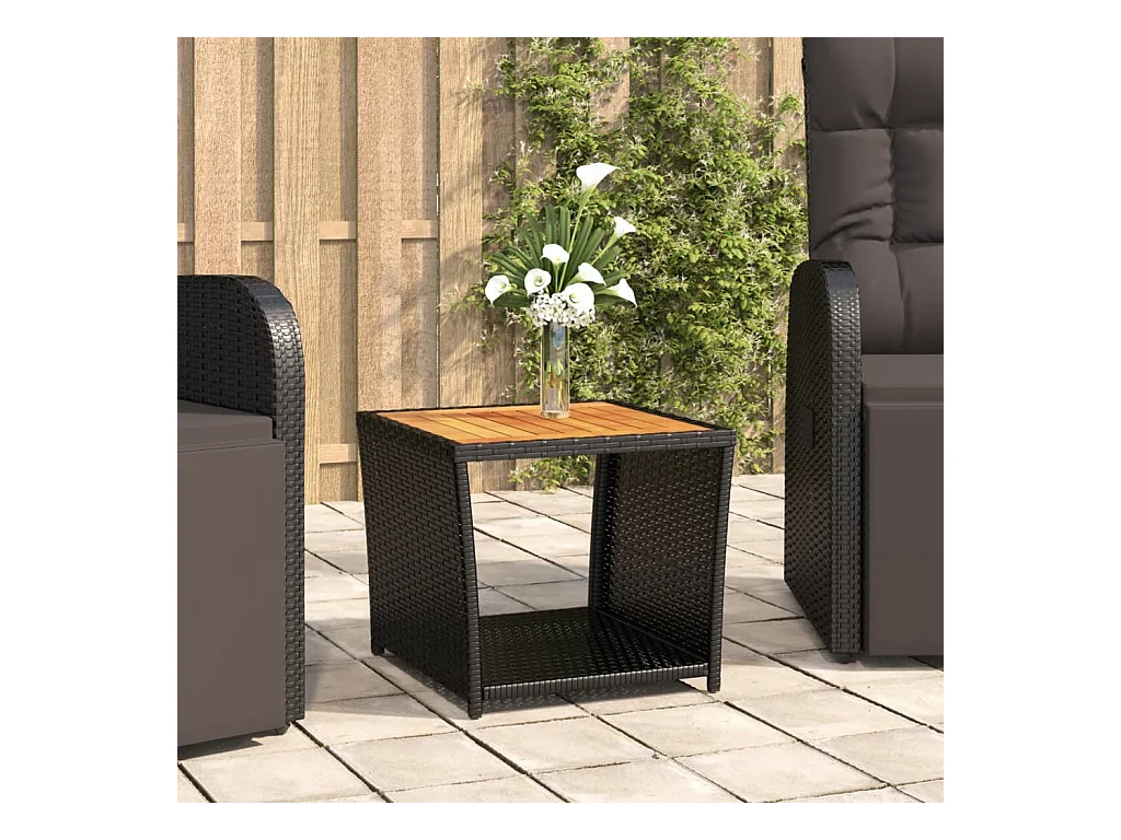 Table de jardin noir 55x55x36 cm résine tressée et bois acacia