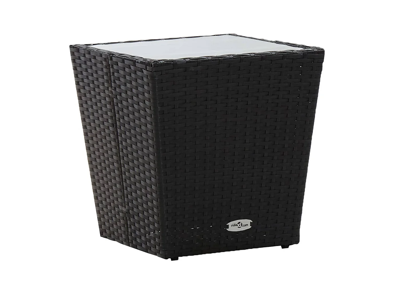 Table à thé Noir 41,5x41,5x43 cm Résine tressée et verre trempé