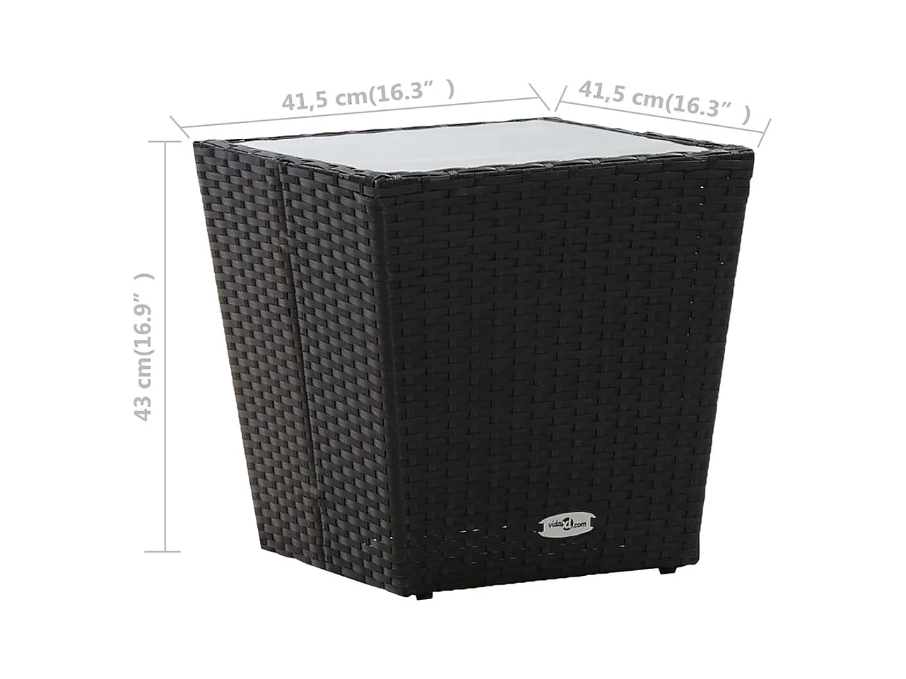 Table à thé Noir 41,5x41,5x43 cm Résine tressée et verre trempé GHR94925