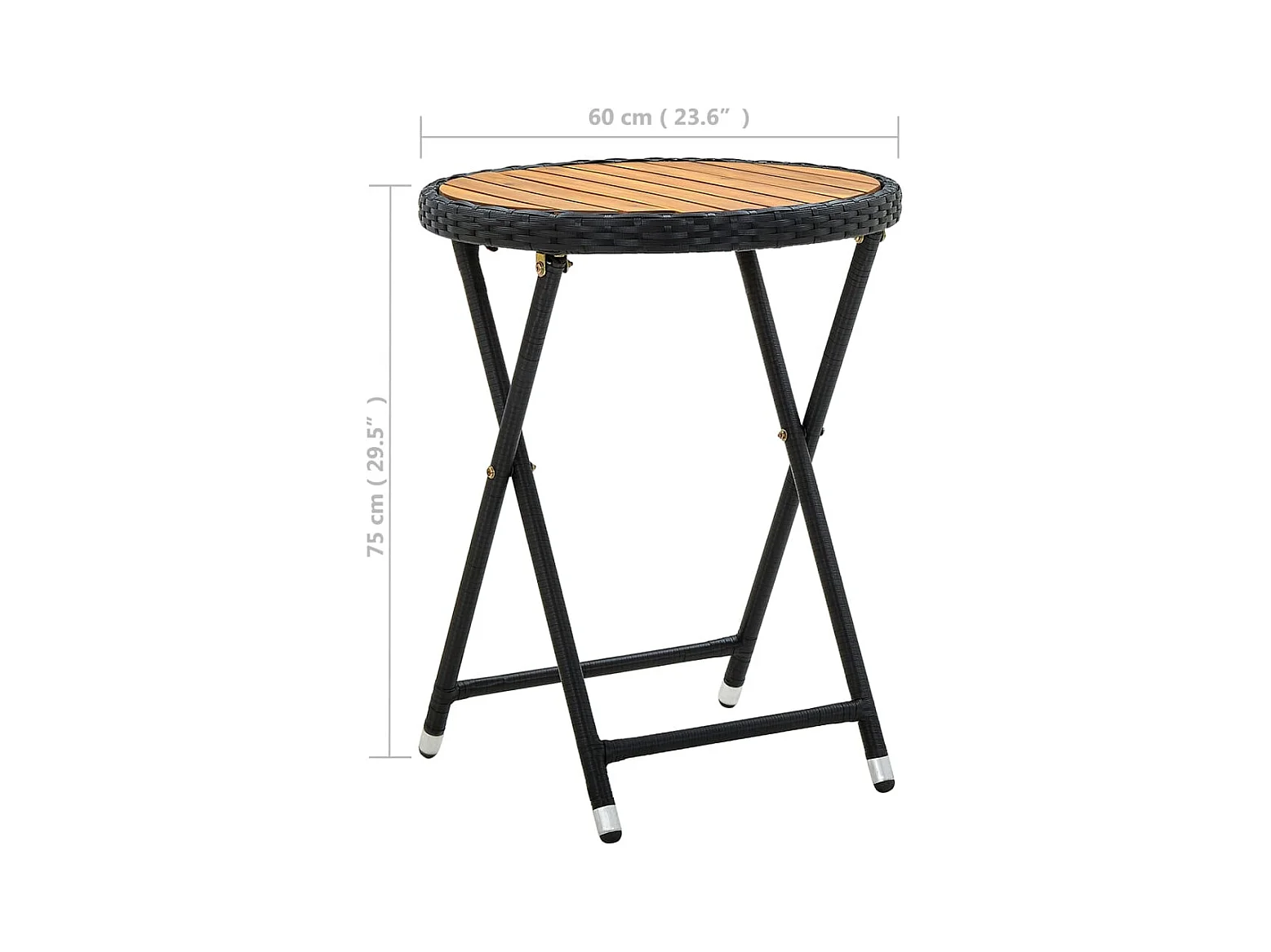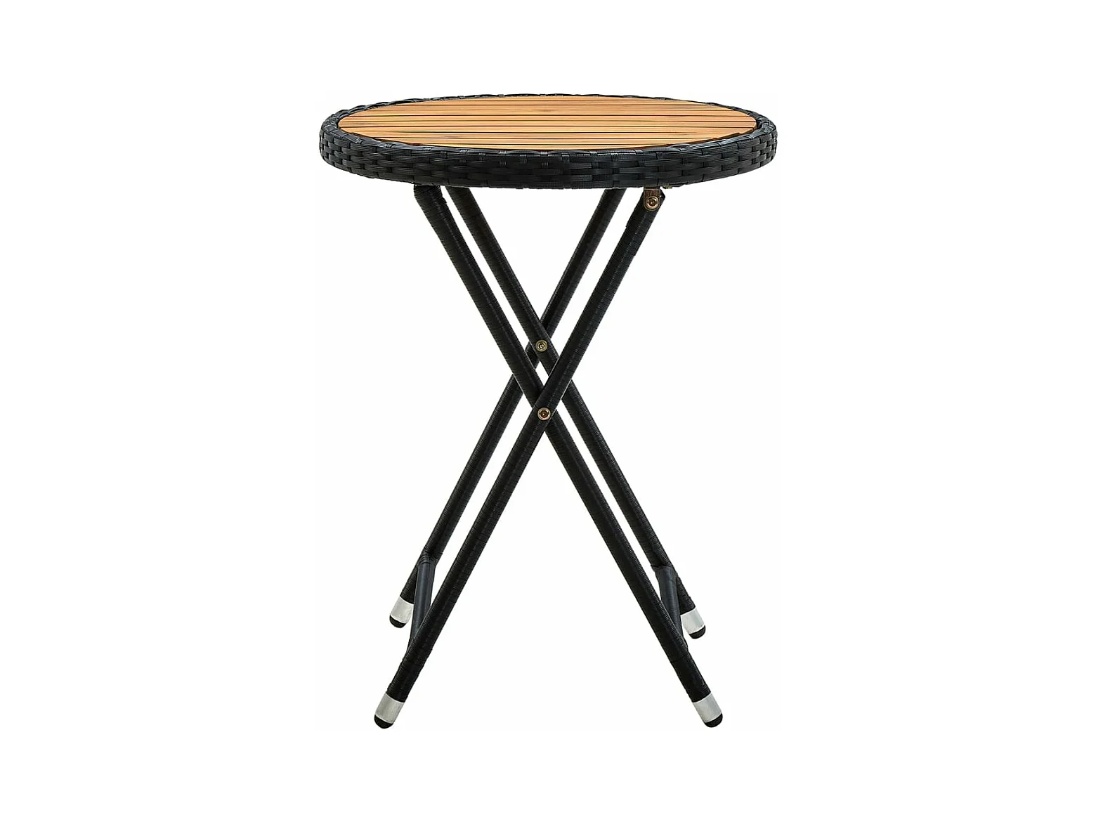 Table de jardin Ø60x75 cm Acacia et résine tressée Noir