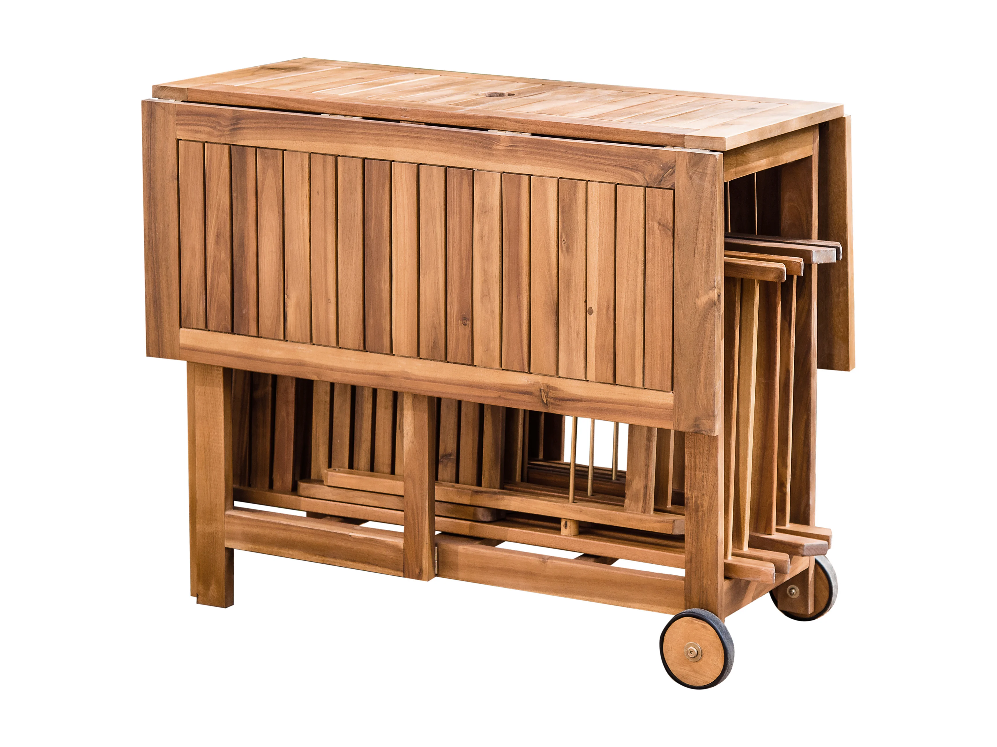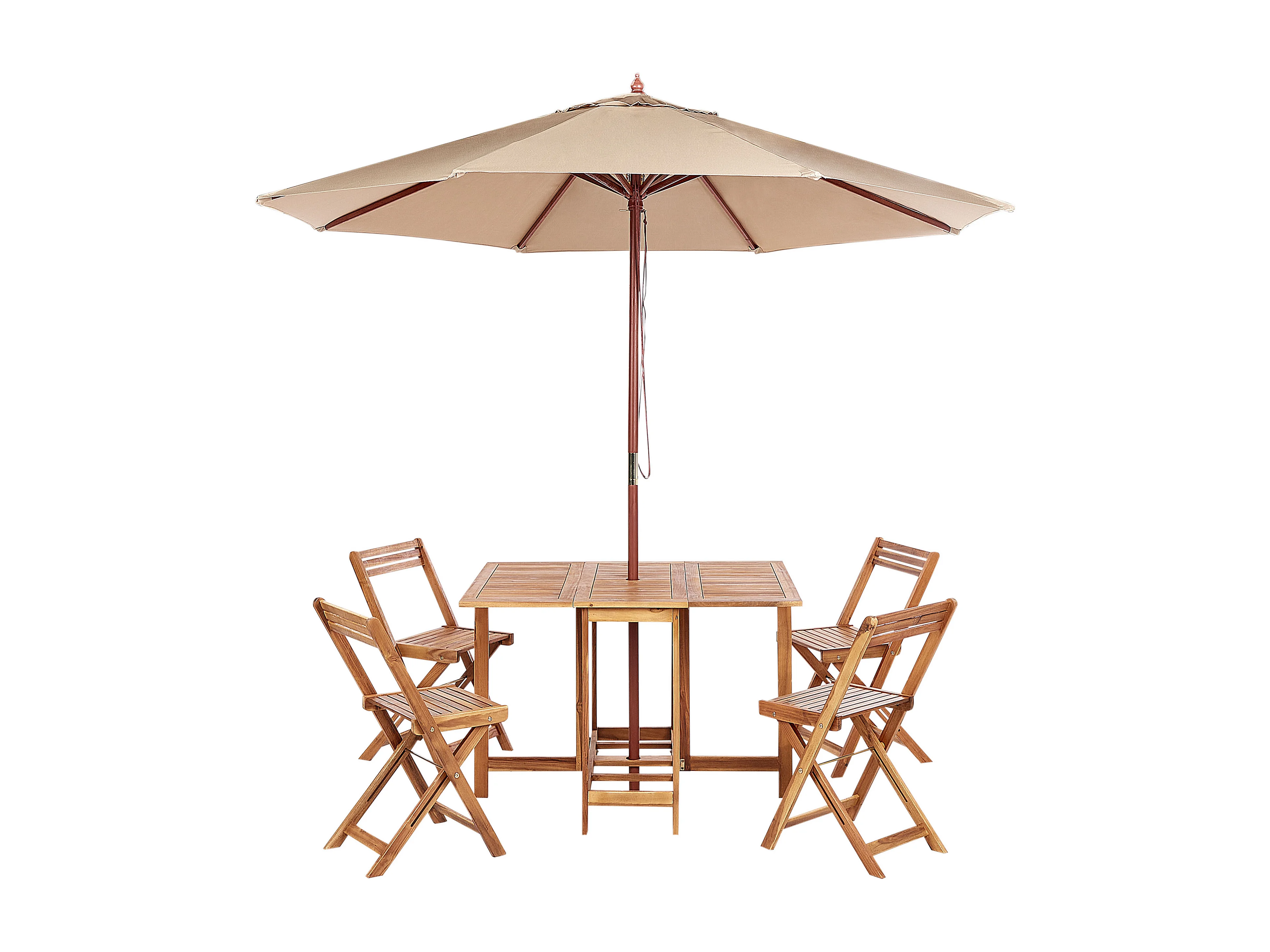 Salle à manger de jardin 4 places FRASSINE avec parasol (12 options) Acacia Naturel