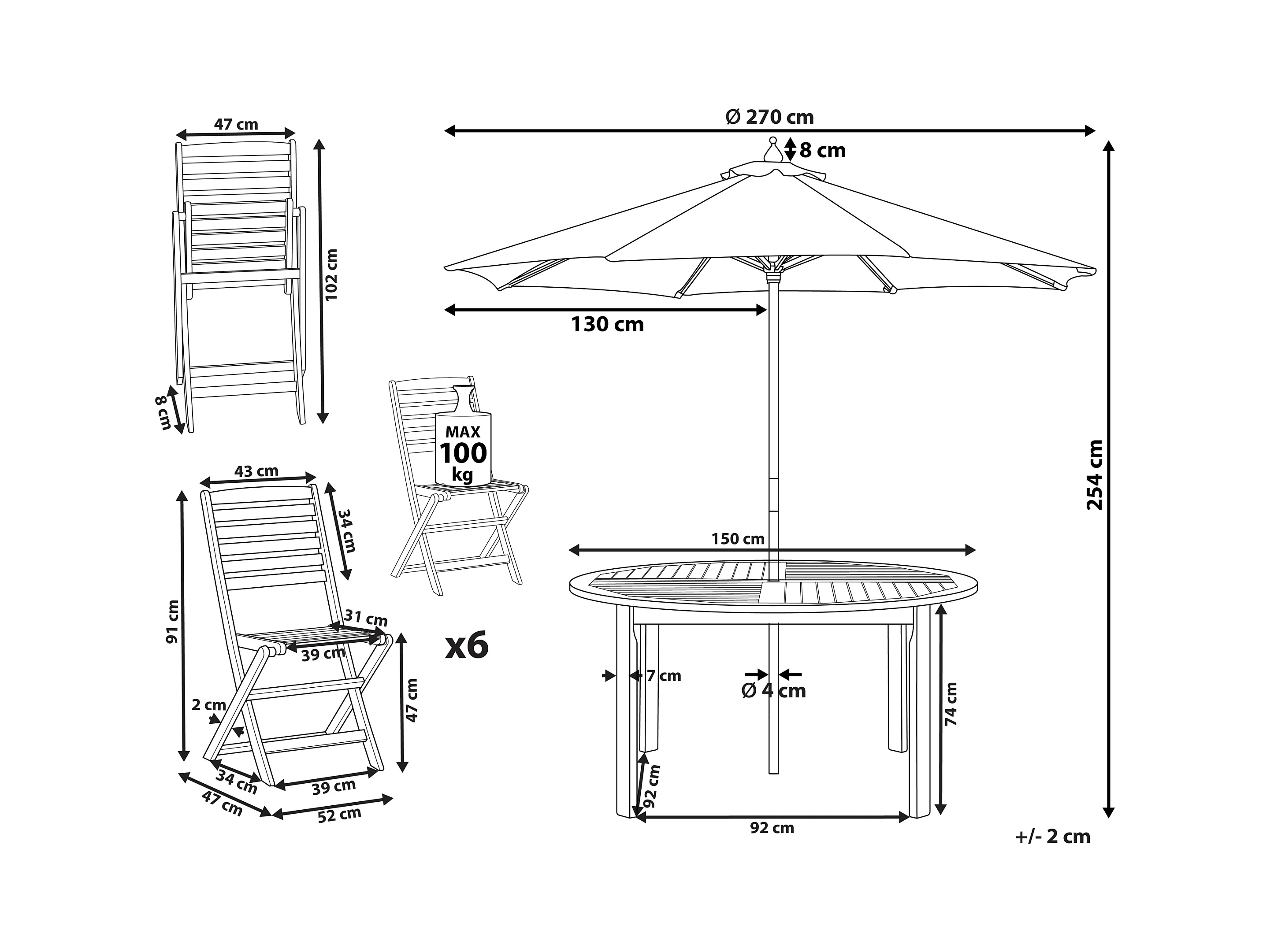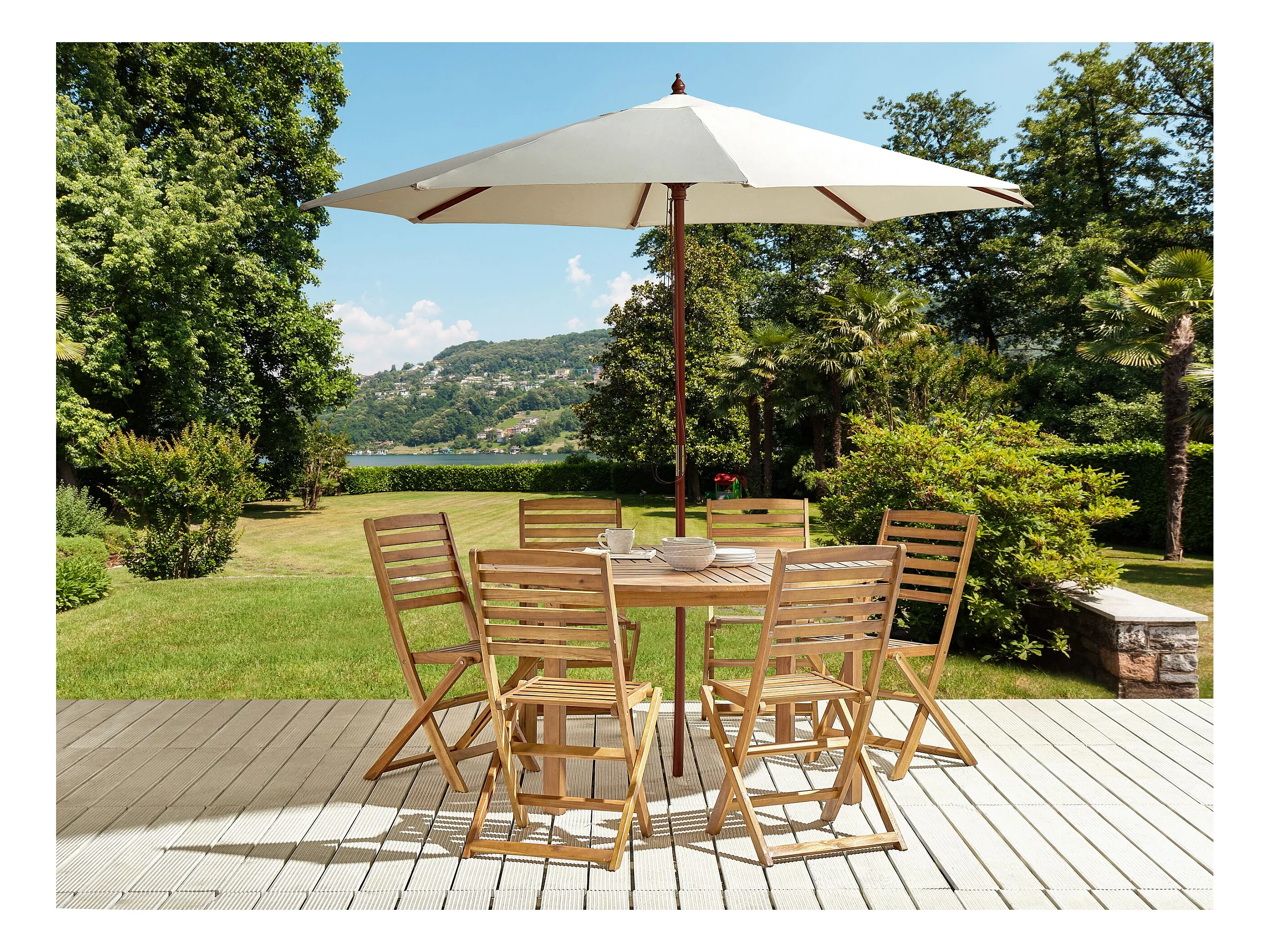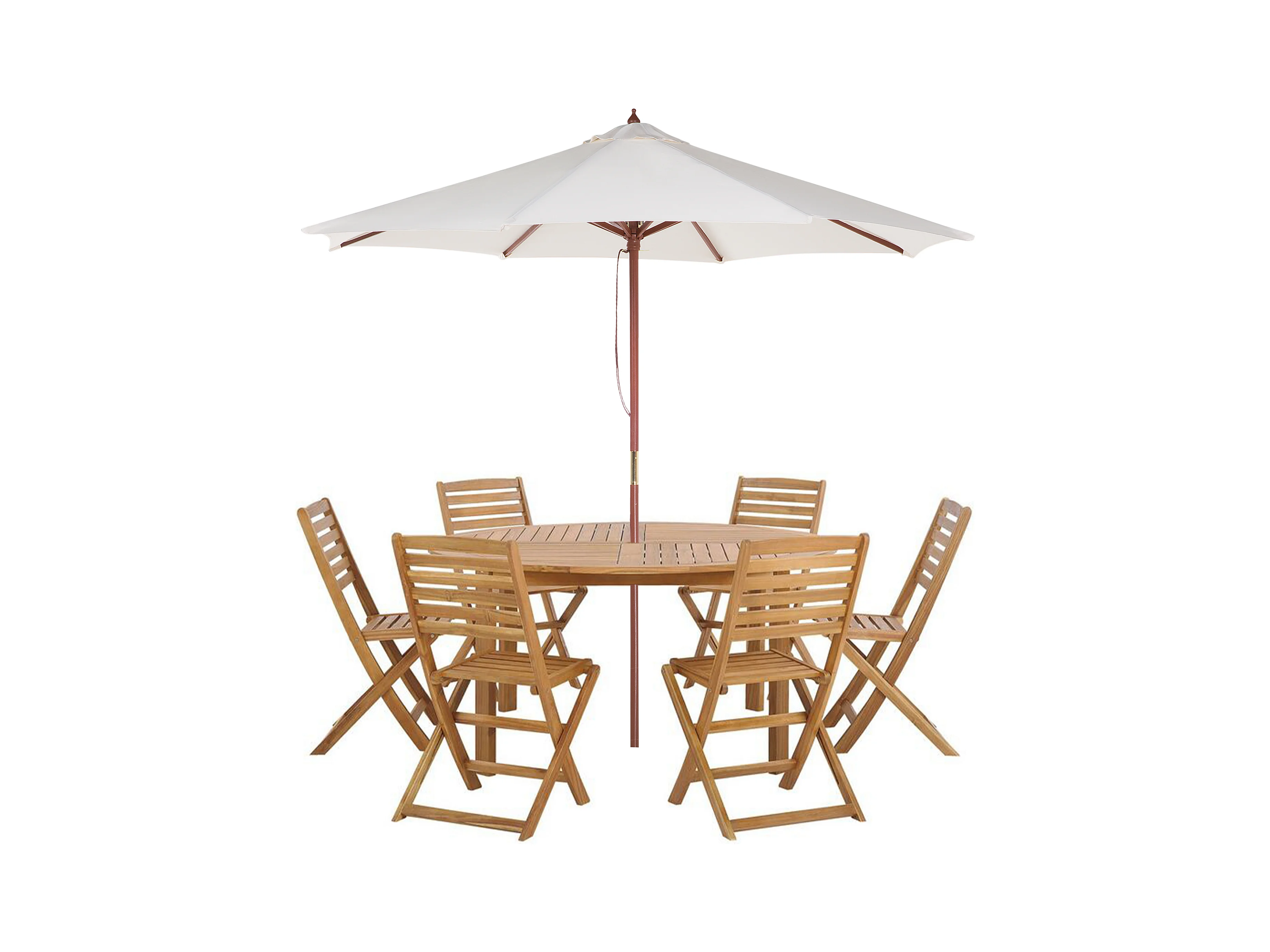 Salle à manger de jardin 6 places TOLVE avec parasol (12 options) Acacia Marron