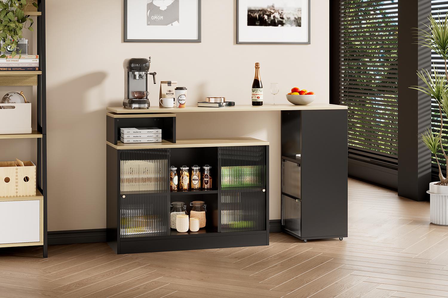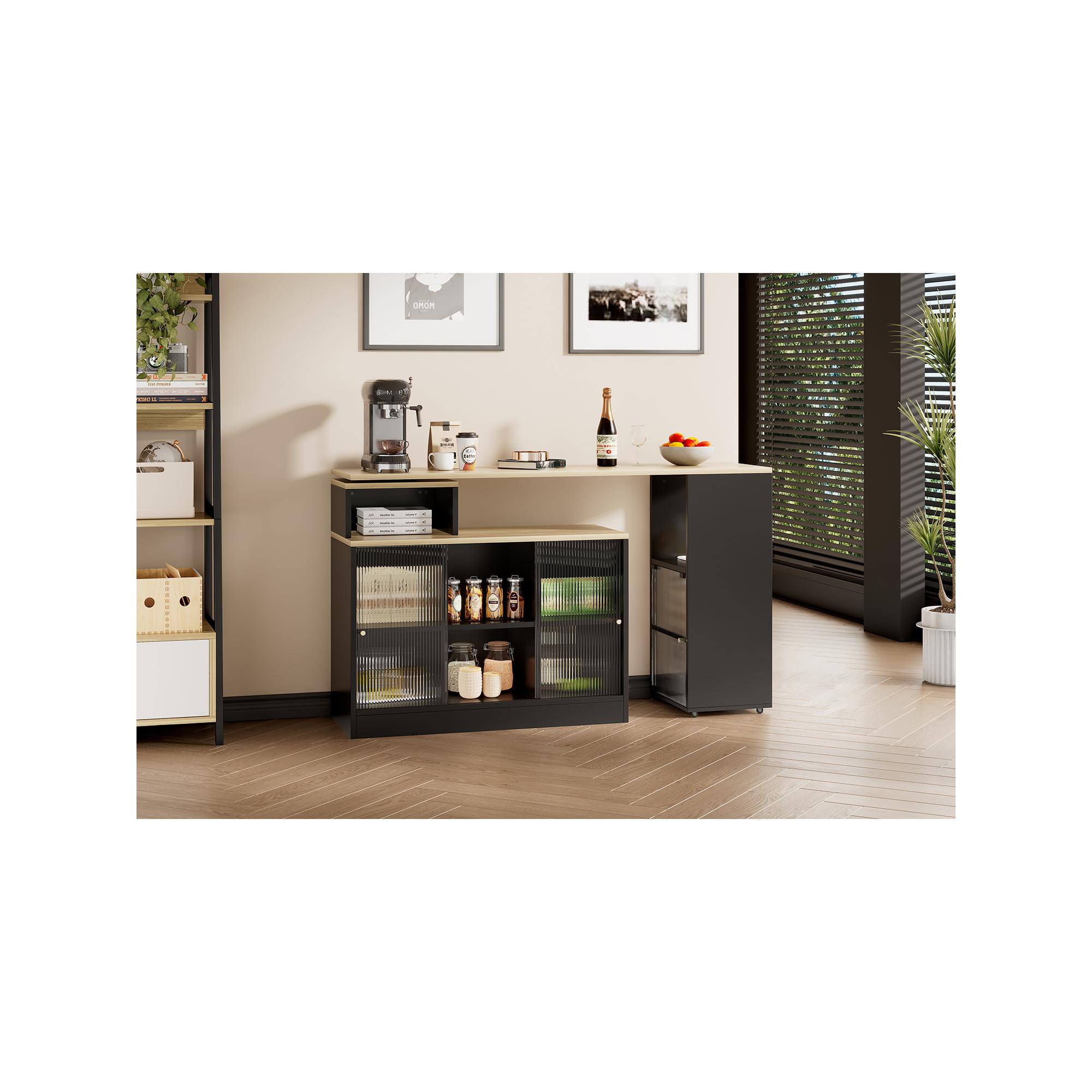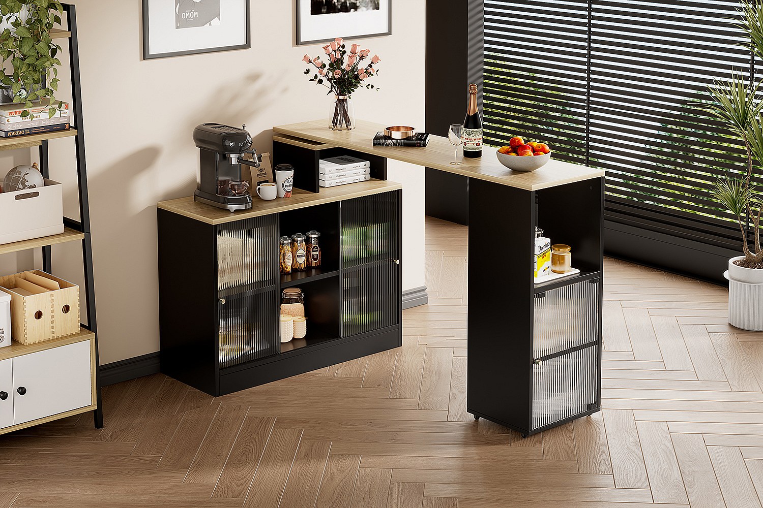 Table bar extensible avec rangement, design moderne, MDF et verre, noir (169.55x47.88x15.24 cm)
