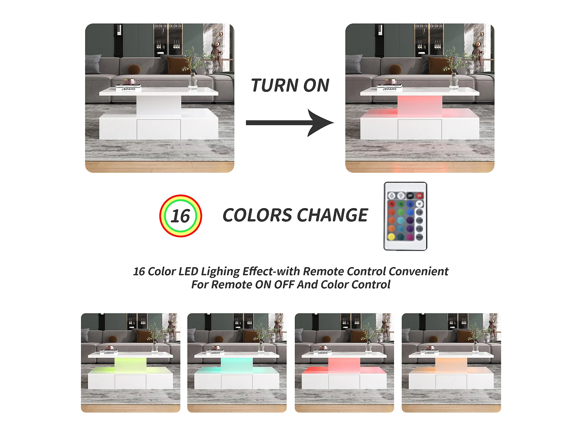 Table basse blanche avec éclairage LED et rangement – pour salon et bureaux