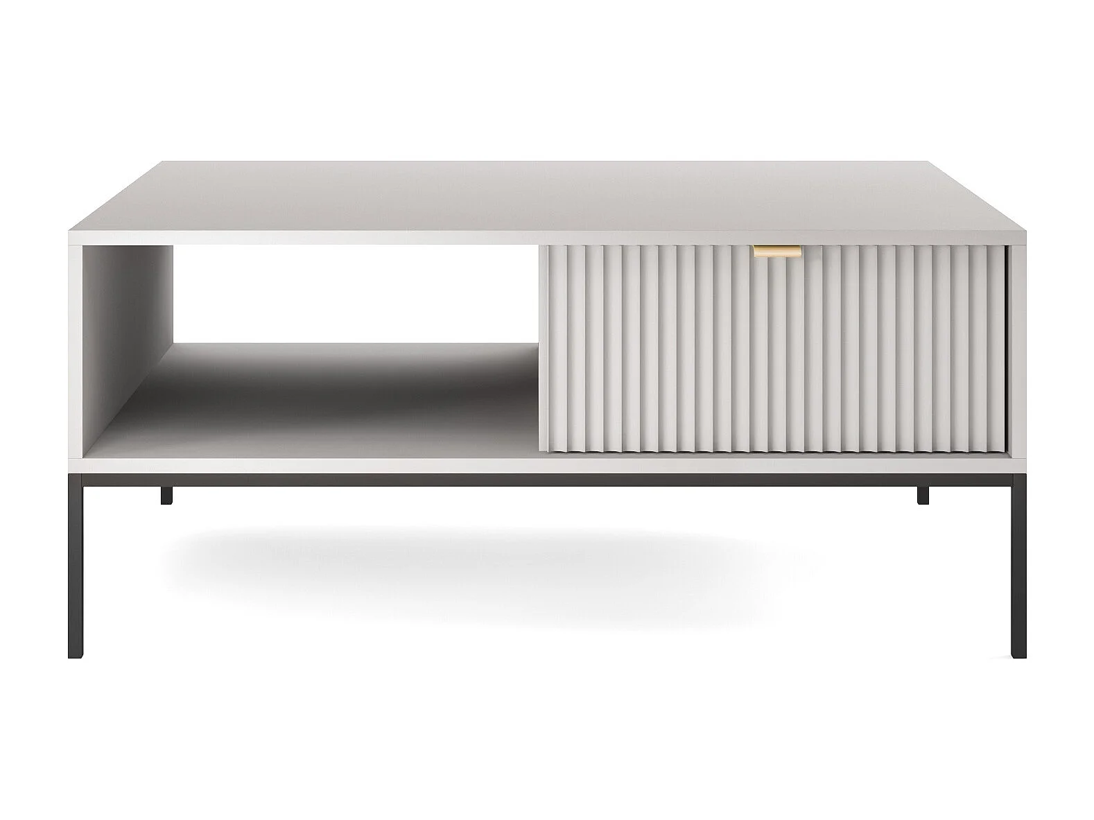 Table basse : 1 tiroir, Gris, Noir, 104 x 46 x 68 cm, poignées dorées