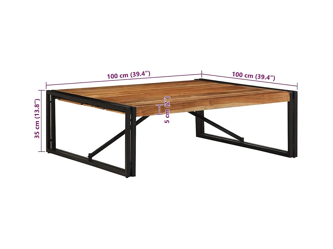 Table basse chêne artisanal 100x100x35 cm bois d'ingénierie