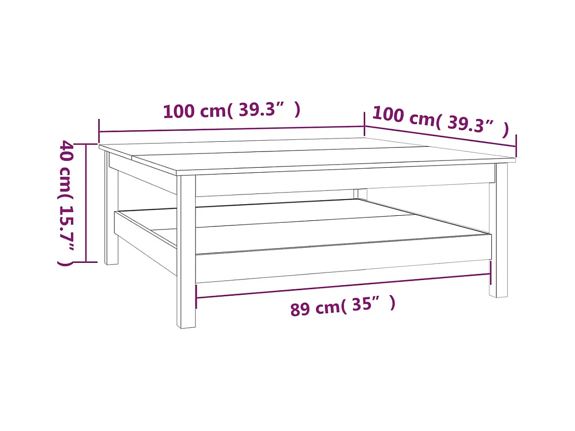 Table basse Marron miel 100x100x40 cm Bois massif de pin