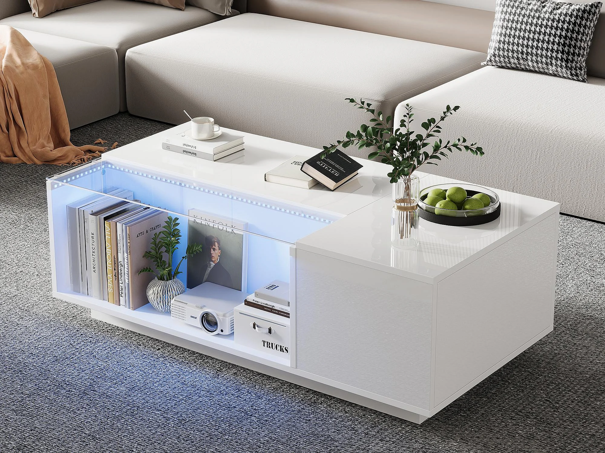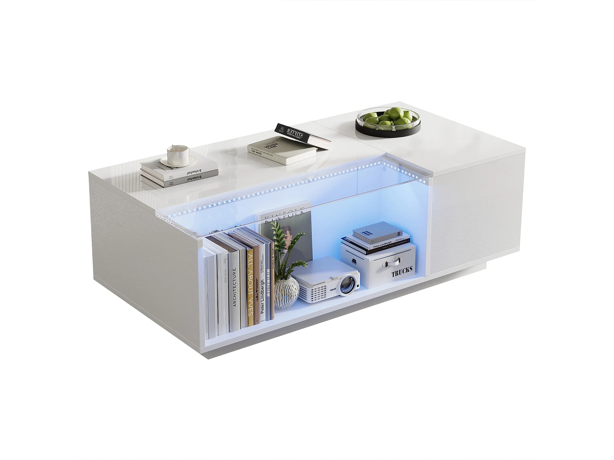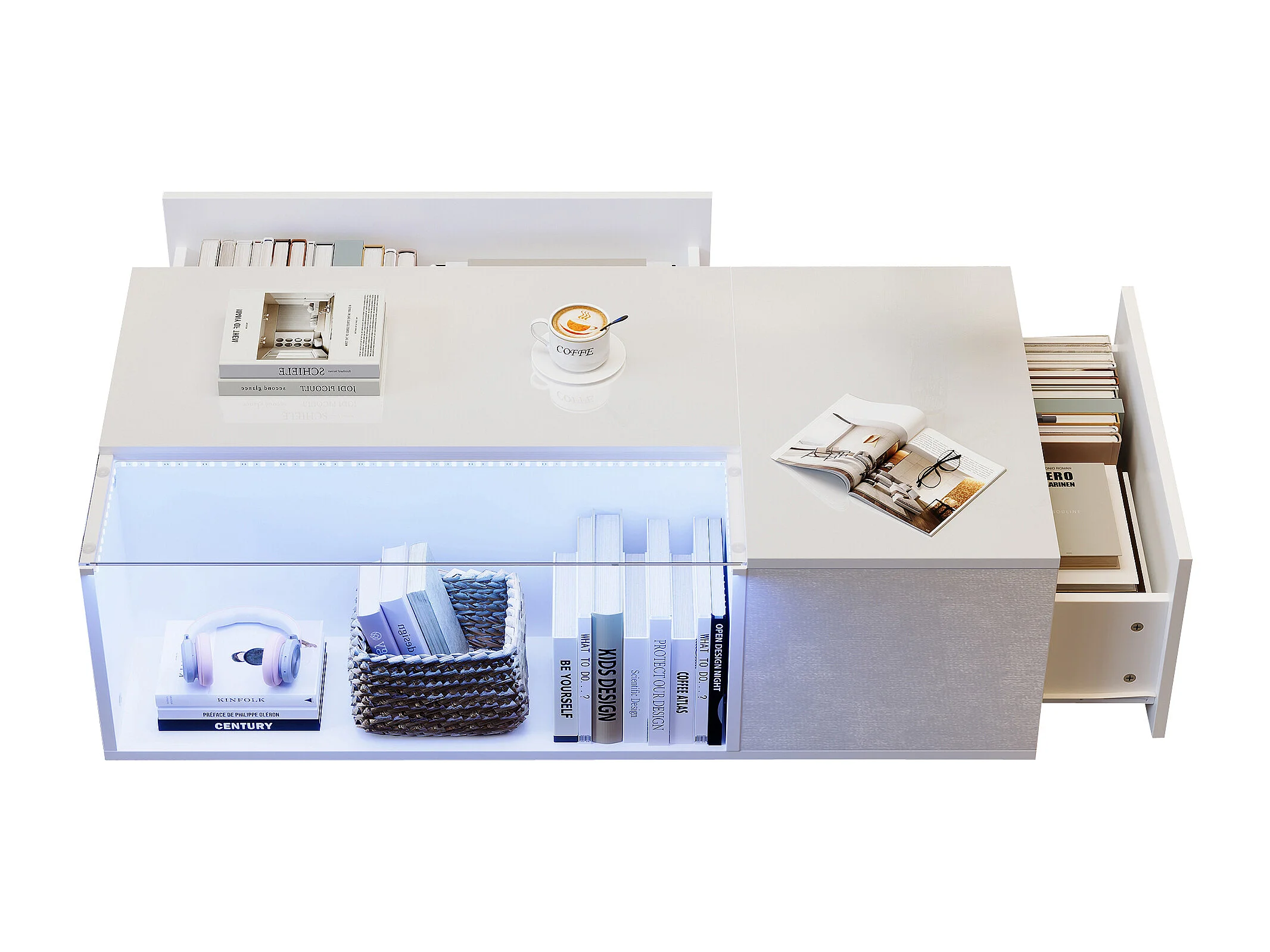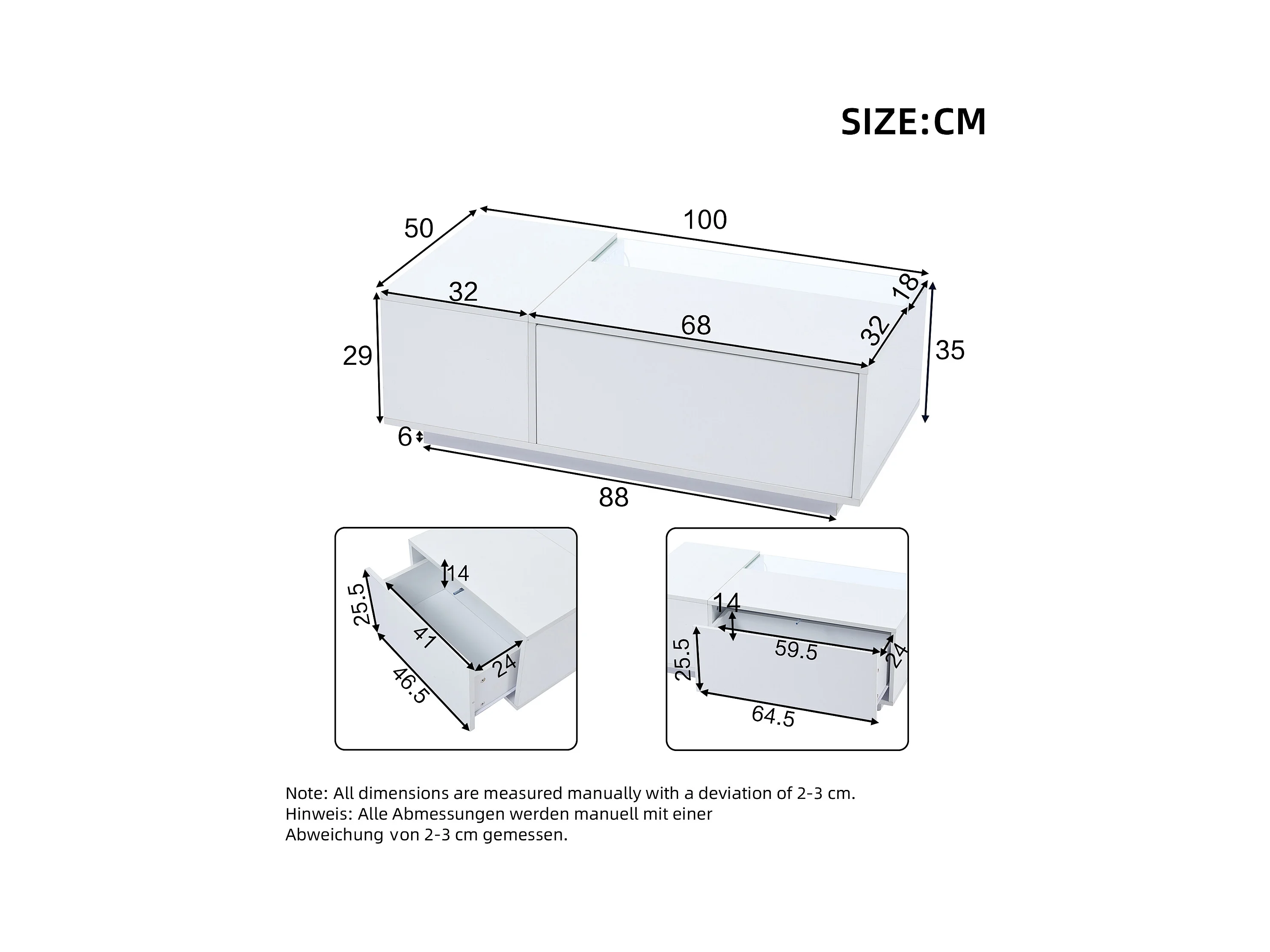 Table basse 100x50x35cm - avec éclairage LED - 2 tiroirs - blanc