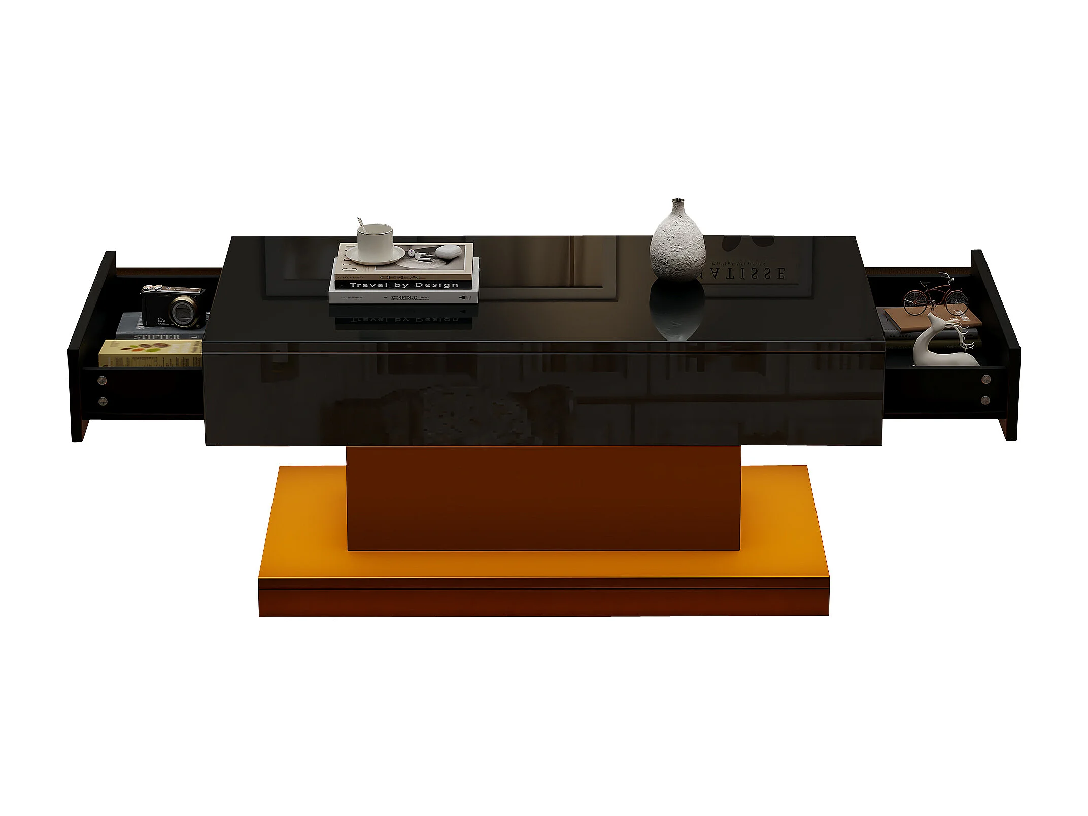 Table basse 100x50x45 cm avec LED Deux tiroirs Panneaux de particules en noir pour salon