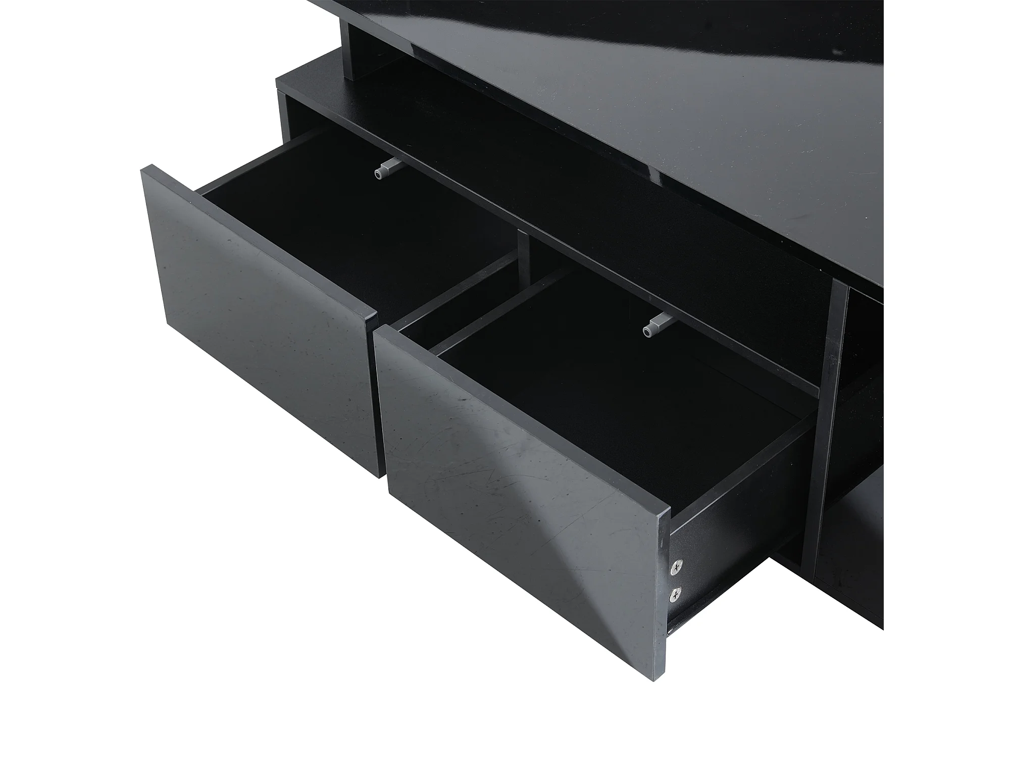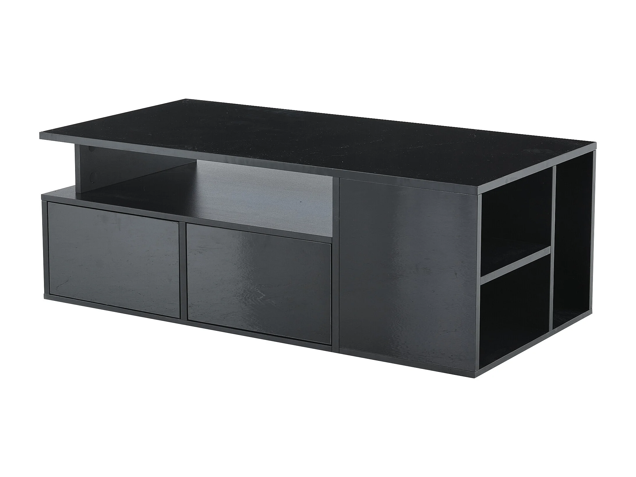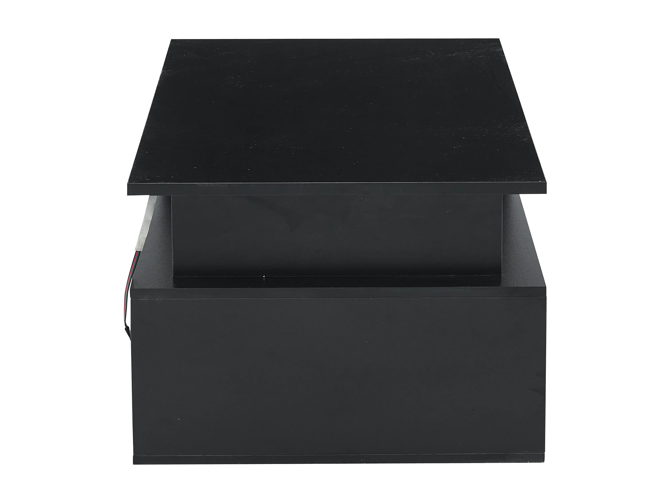 Table basse 100x50x35 cm, LED via appli, 2 tiroirs et rangements latéraux, panneau de particules, noir