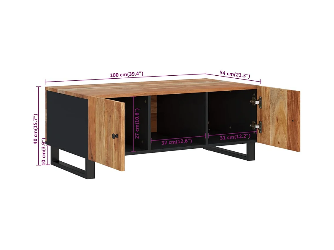 Table basse 100x54x40 cm bois d'acacia solide et d'ingénierie