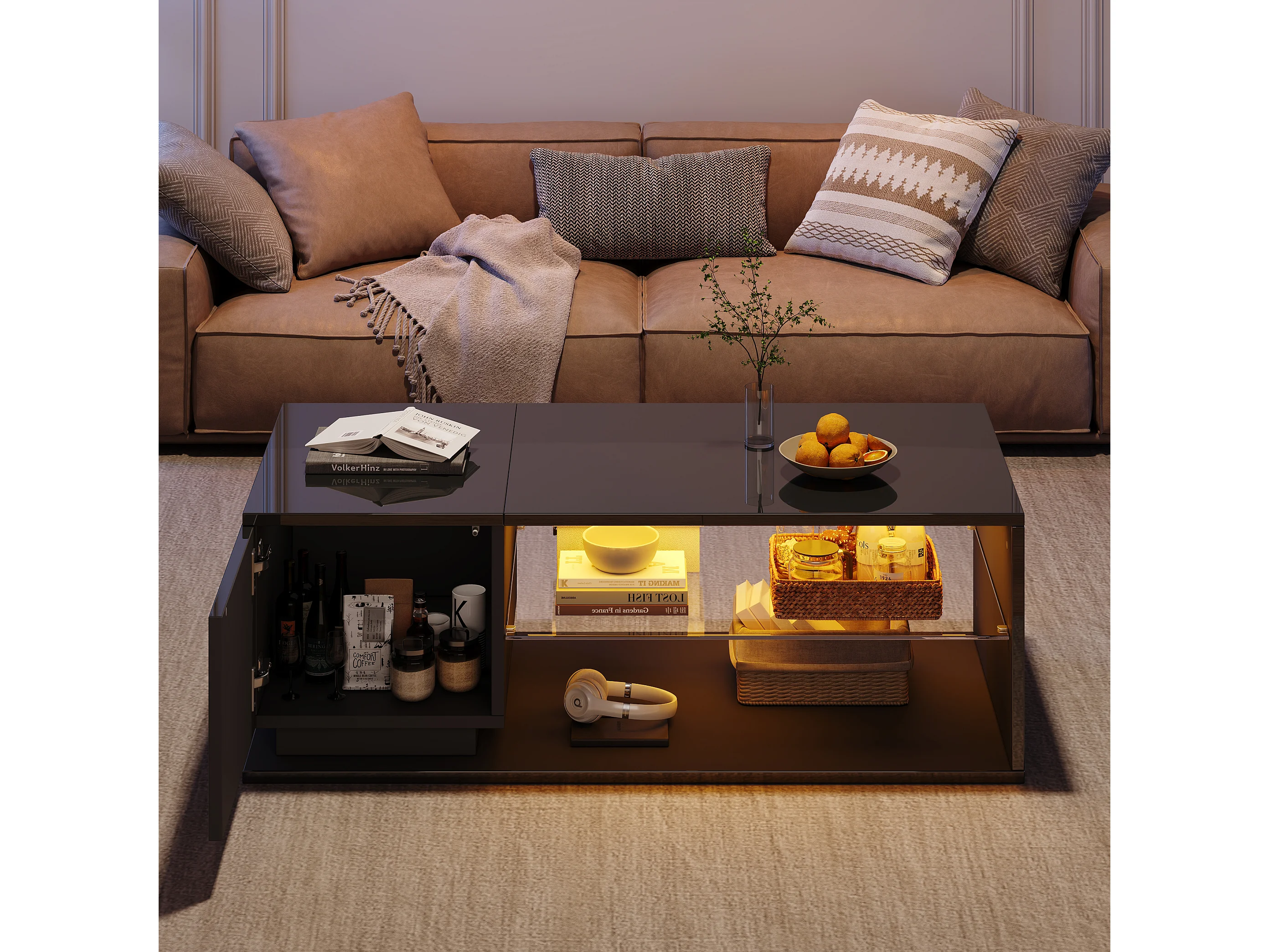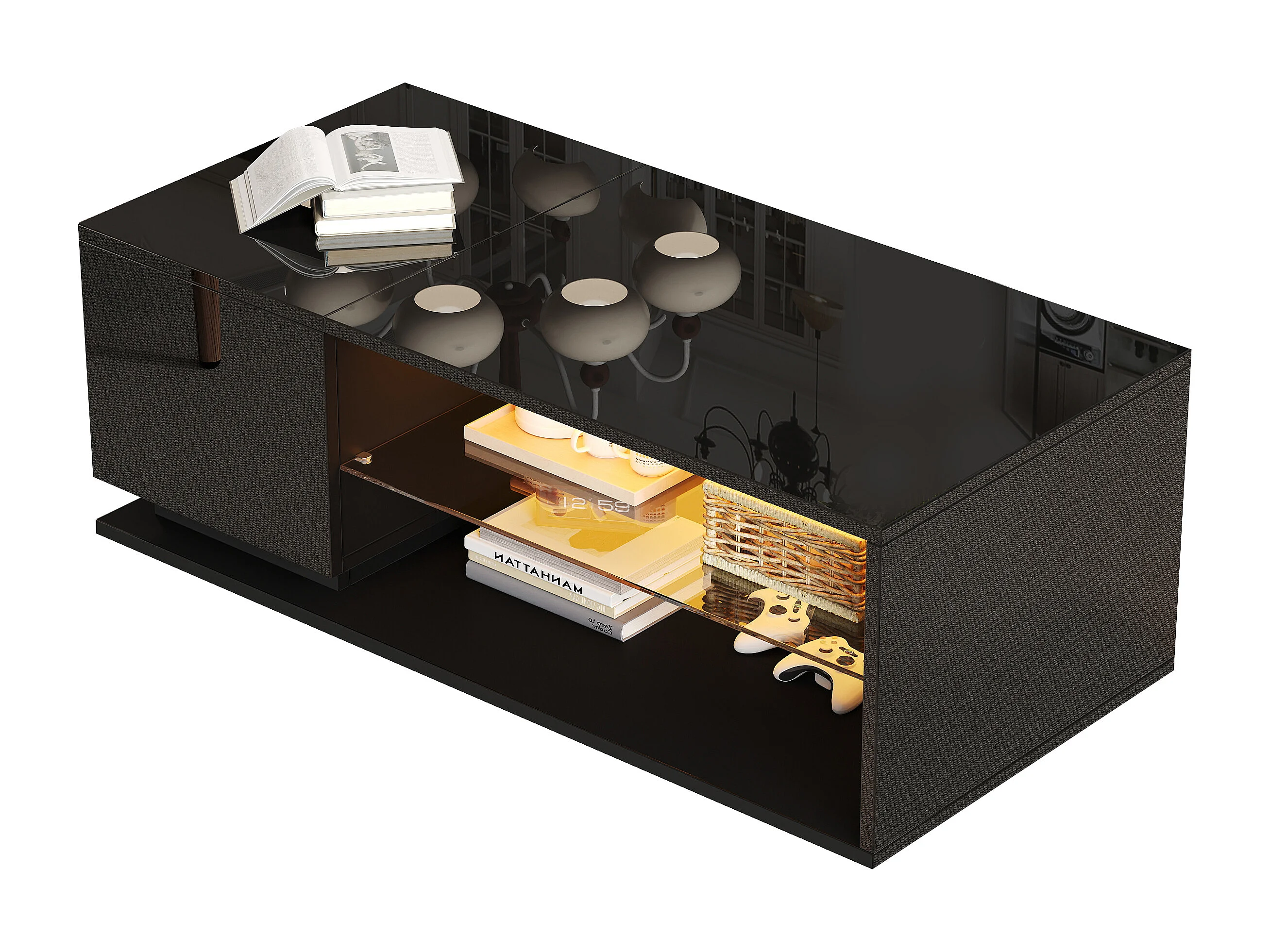 Table basse 105x50x36cm LED brillant avec éclairage intégré et rangement pour salon