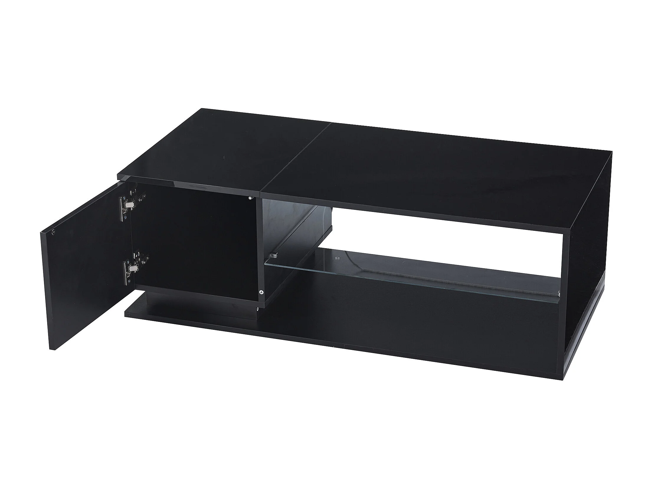Table basse 94x50x34 cm LED brillant 2 tiroirs porte vitrine verre trempé noir salon contemporain