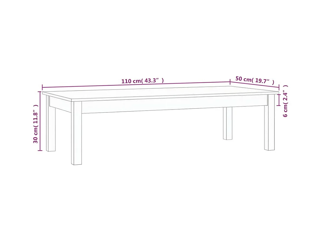 Table basse 110x50x34 cm Bois de pin massif OFR86070 BonneVie Meuble