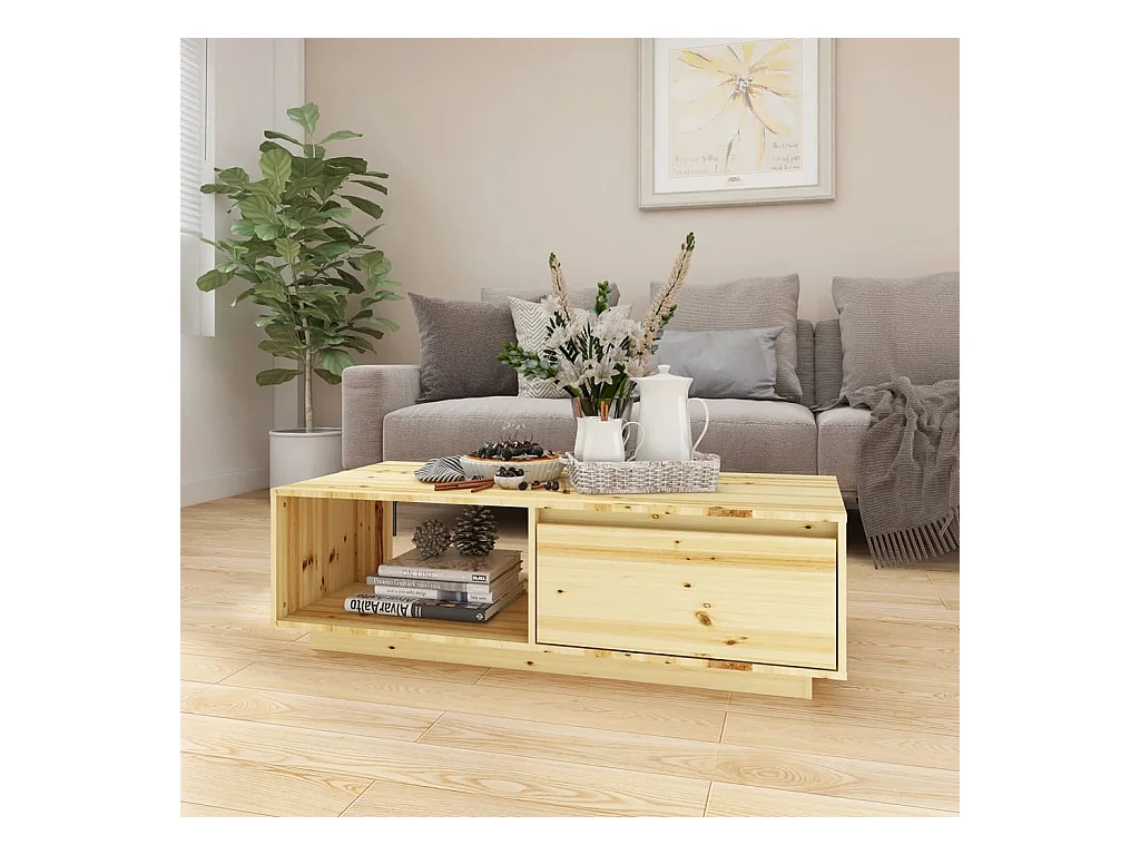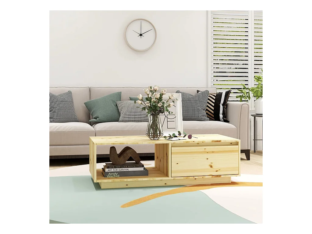 Table basse marron miel 110x50x33,5 cm bois de pin massif
