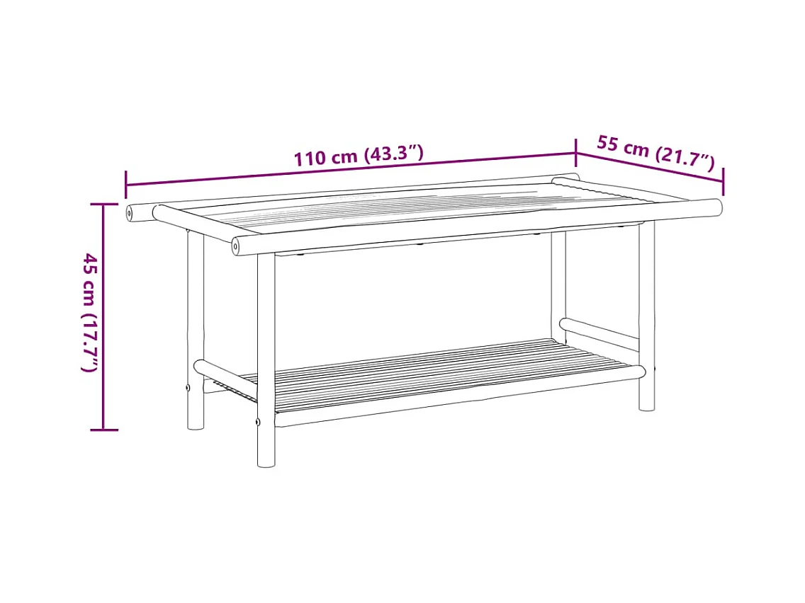 Table basse cadre en O 110x40x45 cm bois de pin massif et fonte FR52006
