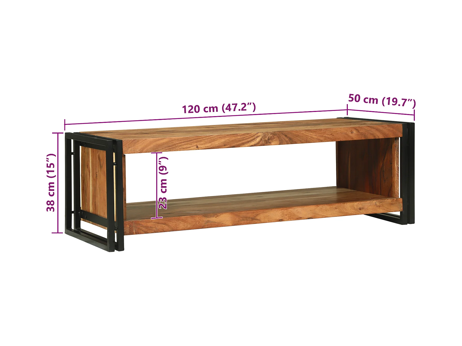 Table basse 120x50x38 cm en bois massif d'acacia
