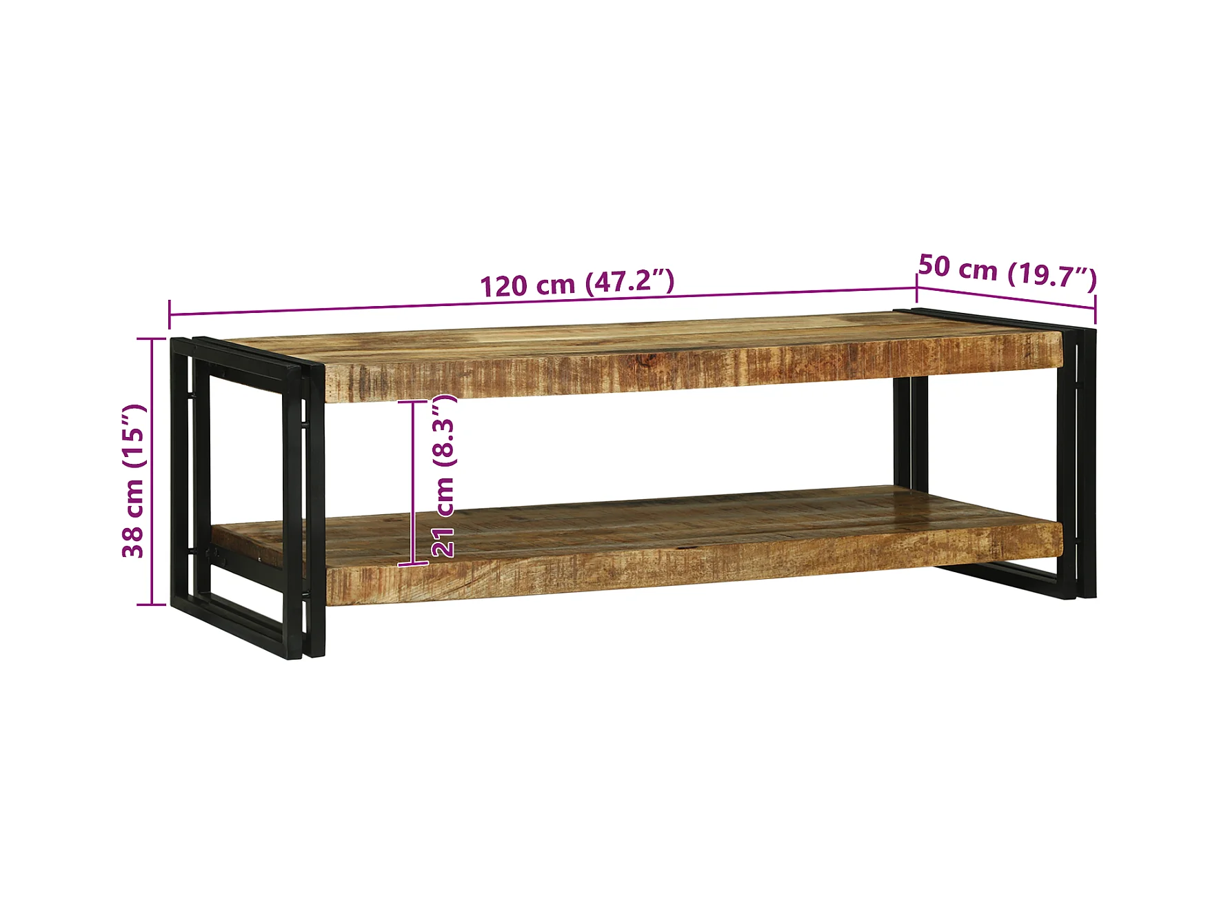 Table basse 120x50x38 cm en bois massif de manguier brut