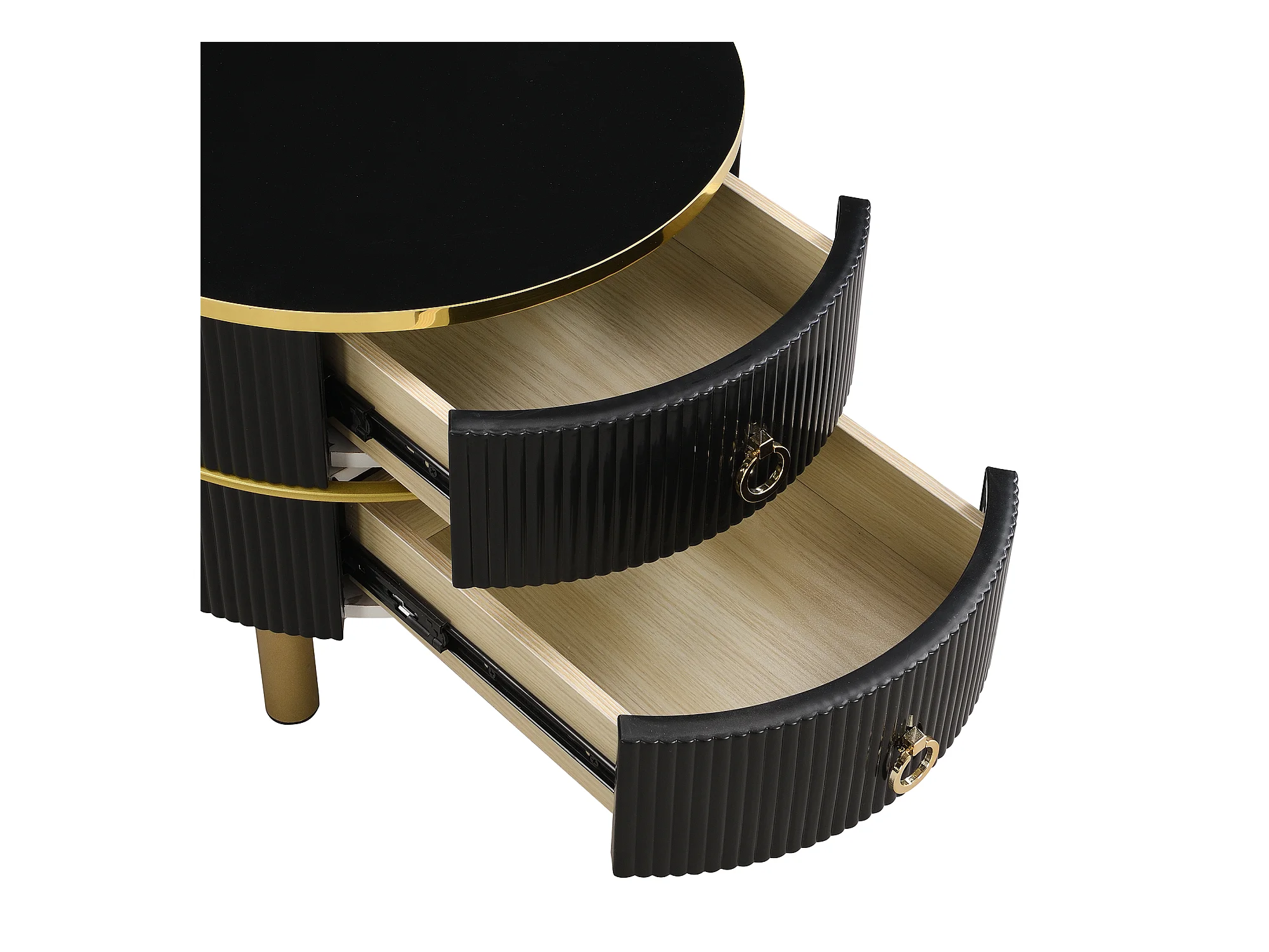 Table basse 2-en-1 ronde, MDF, Plateau en marbre blanc et en verre trempé brun, avec 2 tiroirs, Noir (70x70x46 + 50x50x40 cm)
