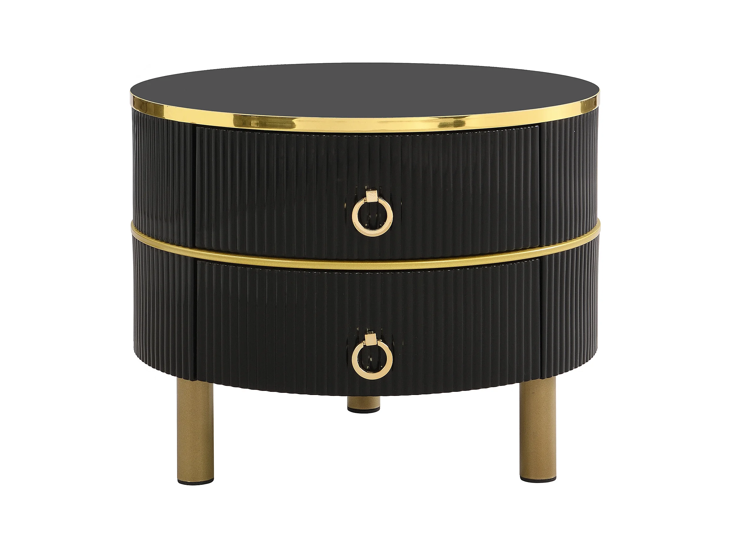 Table basse nesting moderne, finition laquée brillante, MDF et métal, noir et or (70x70x47cm)