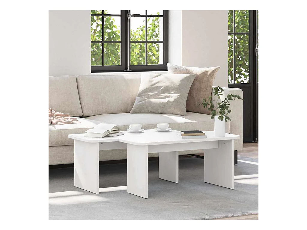 Table basse 2 pcs Blanc 100 x 69 x 35.5 cm Bois massif en pin