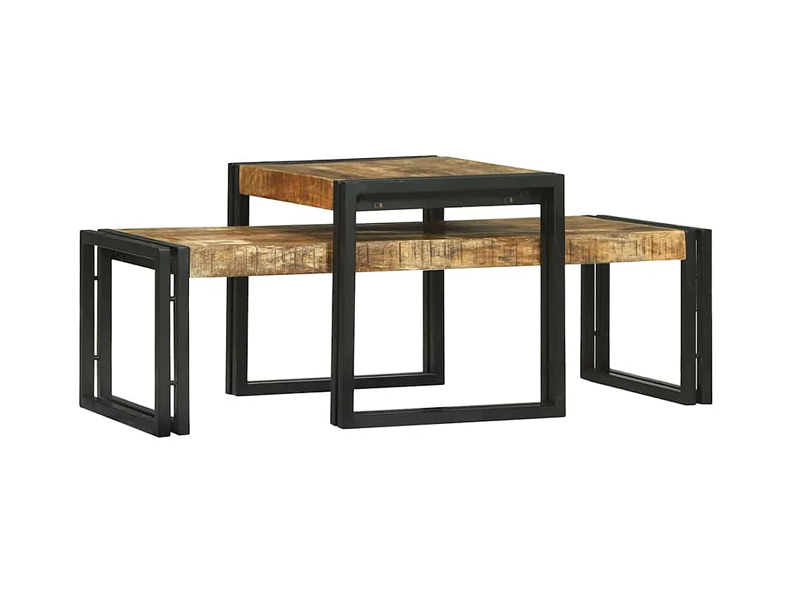 Table basse 2 pcs Marron bois de manguier massif
