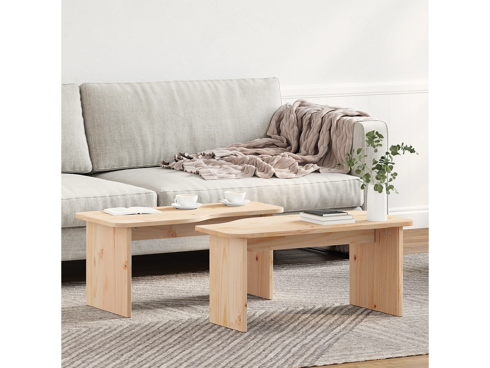 Table basse 2 pcs Naturel 100 x 69 x 35.5 cm Bois de pin massif