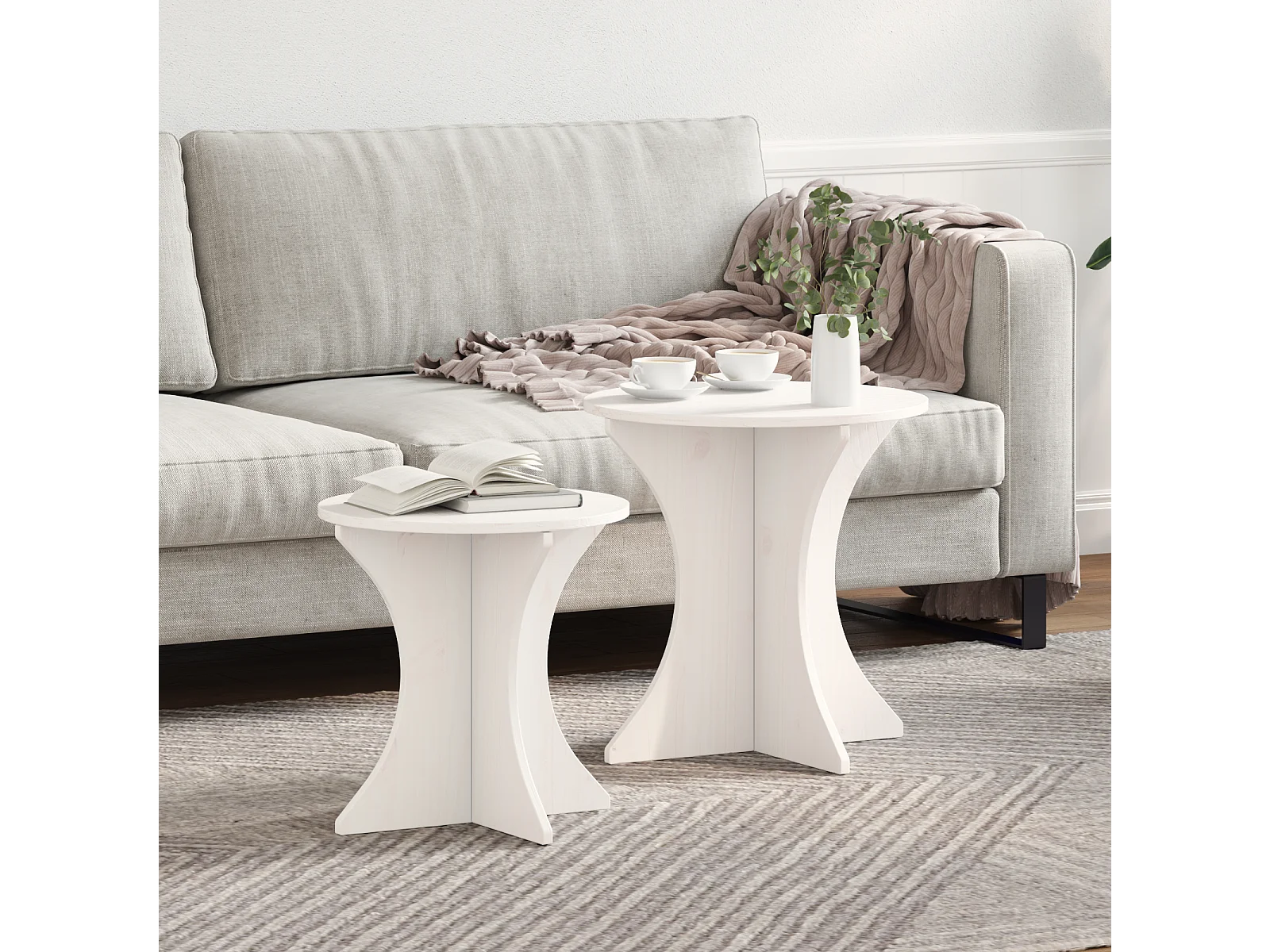 Table basse 2 pièces Blanc 46 x 46 x 47 cm Bois massif en pin