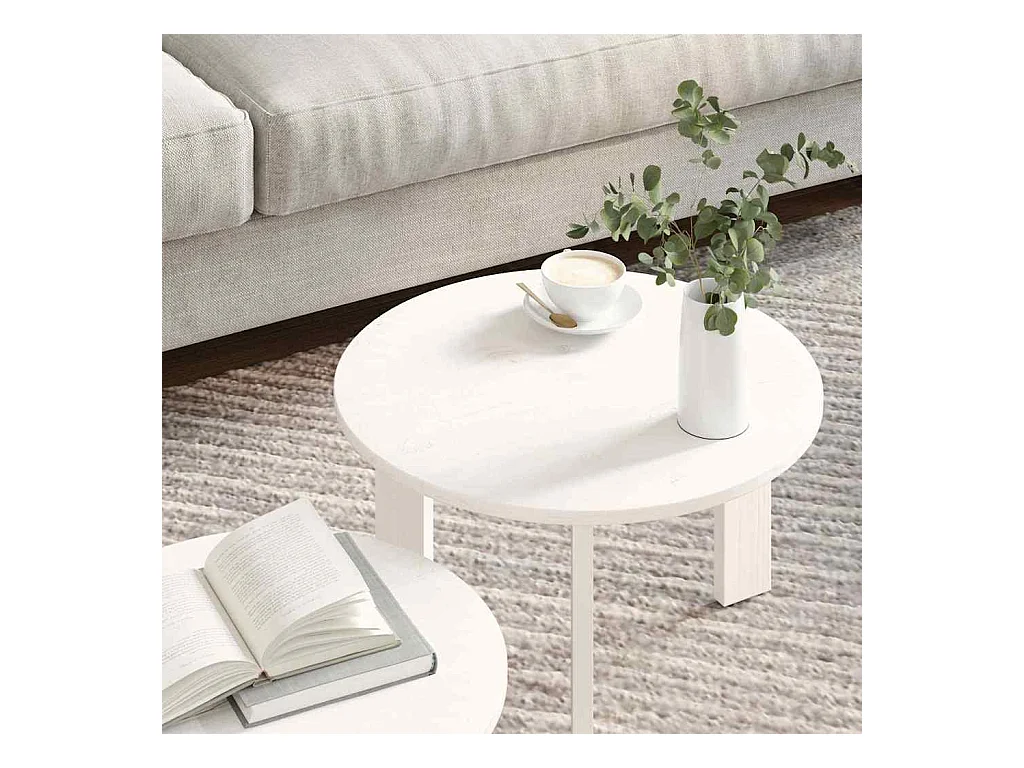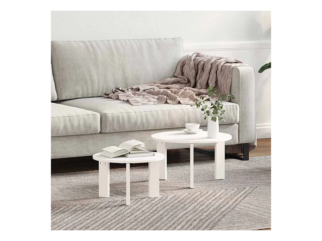 Table basse 3 pièces Blanc 49 x 49 x 30 cm Bois massif en pin