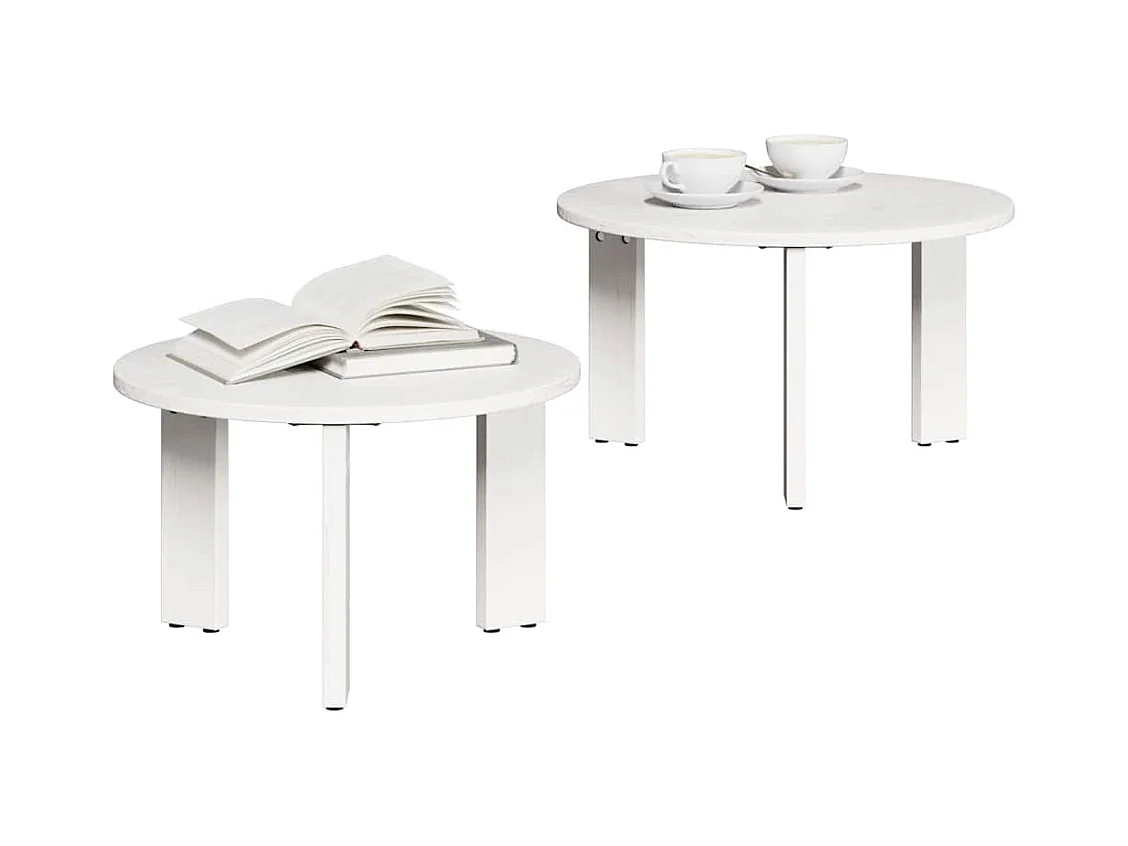 Table basse 2 pièces Blanc 46 x 46 x 47 cm Bois massif en pin